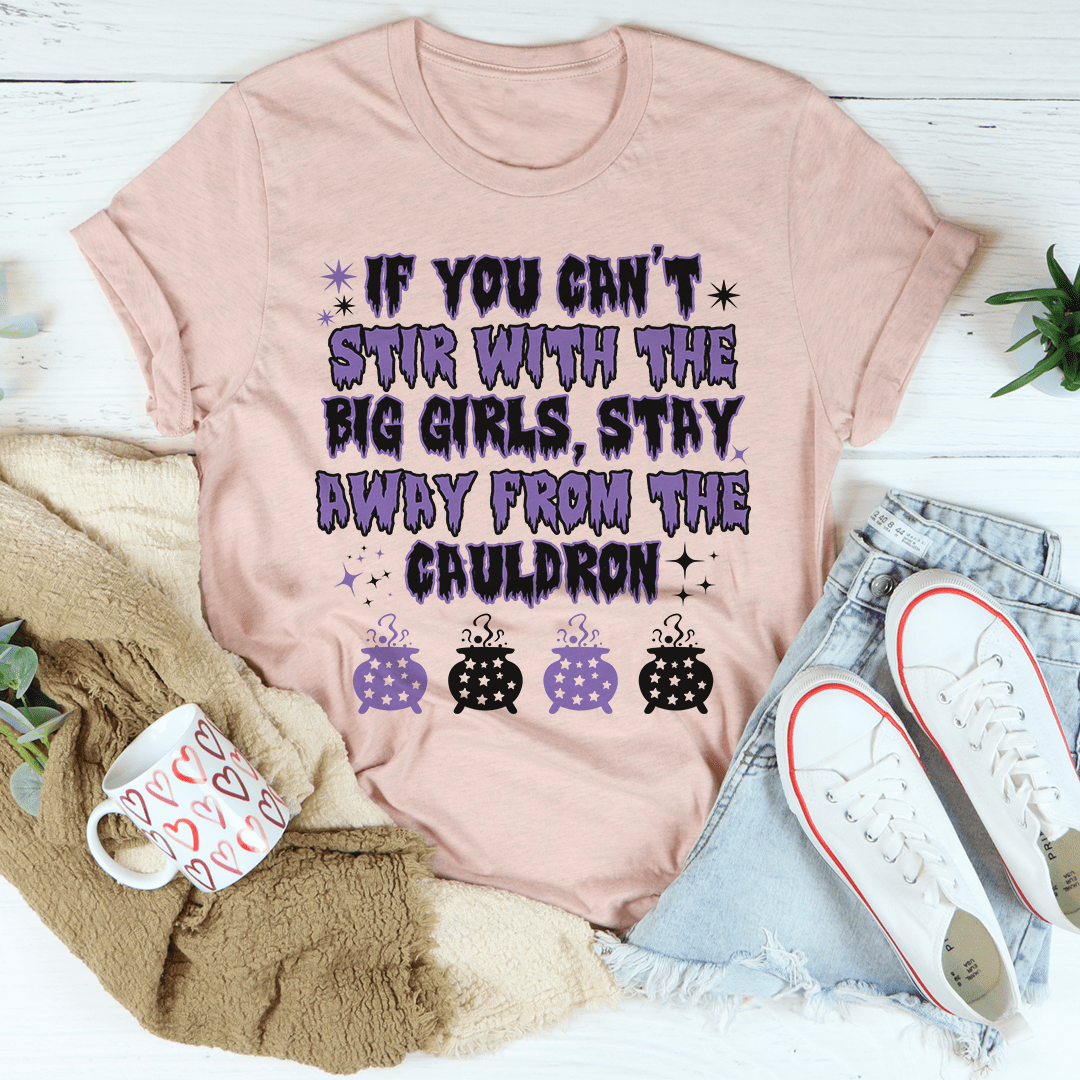 Introducing the 'If You Can't Stir With The Big Girls Stay Away From The Cauldron Tee', a must-have addition to your Halloween wardrobe. This tee is not just a piece of clothing; it's a statement that showcases your love for the spooky season. Made from 100% soft cotton, it ensures maximum comfort while you enjoy all your Halloween festivities. Whether you're attending a Halloween party, going trick-or-treating, or just enjoying a cozy night in, this tee is perfect for any occasion.