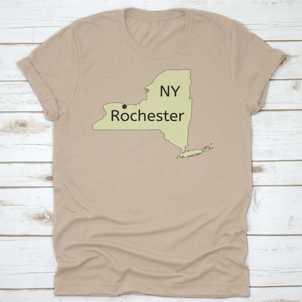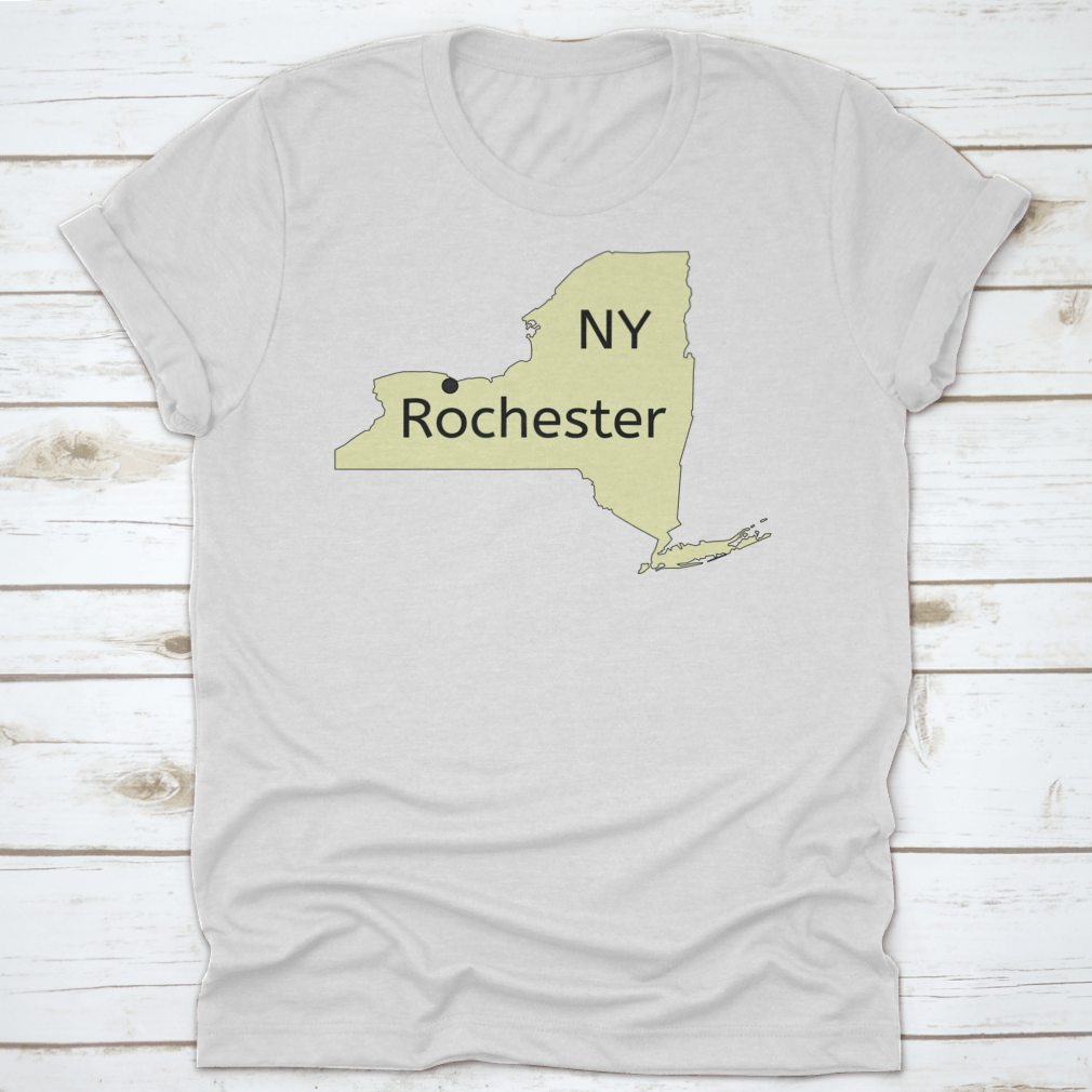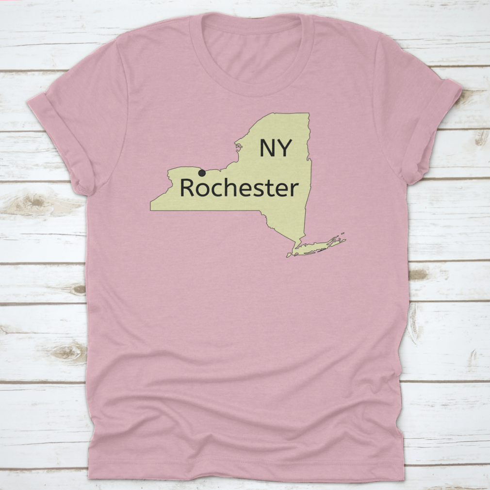 Illustration of Rochester City pinned location on New York map, displayed on a comfortable cotton tee.