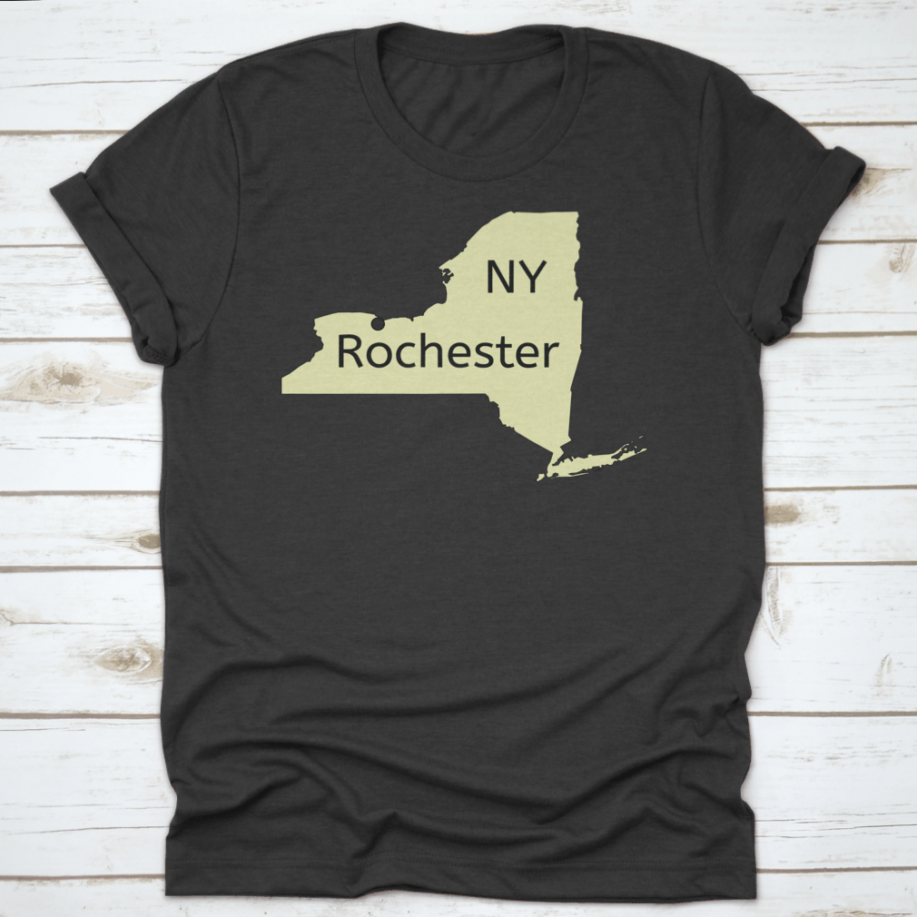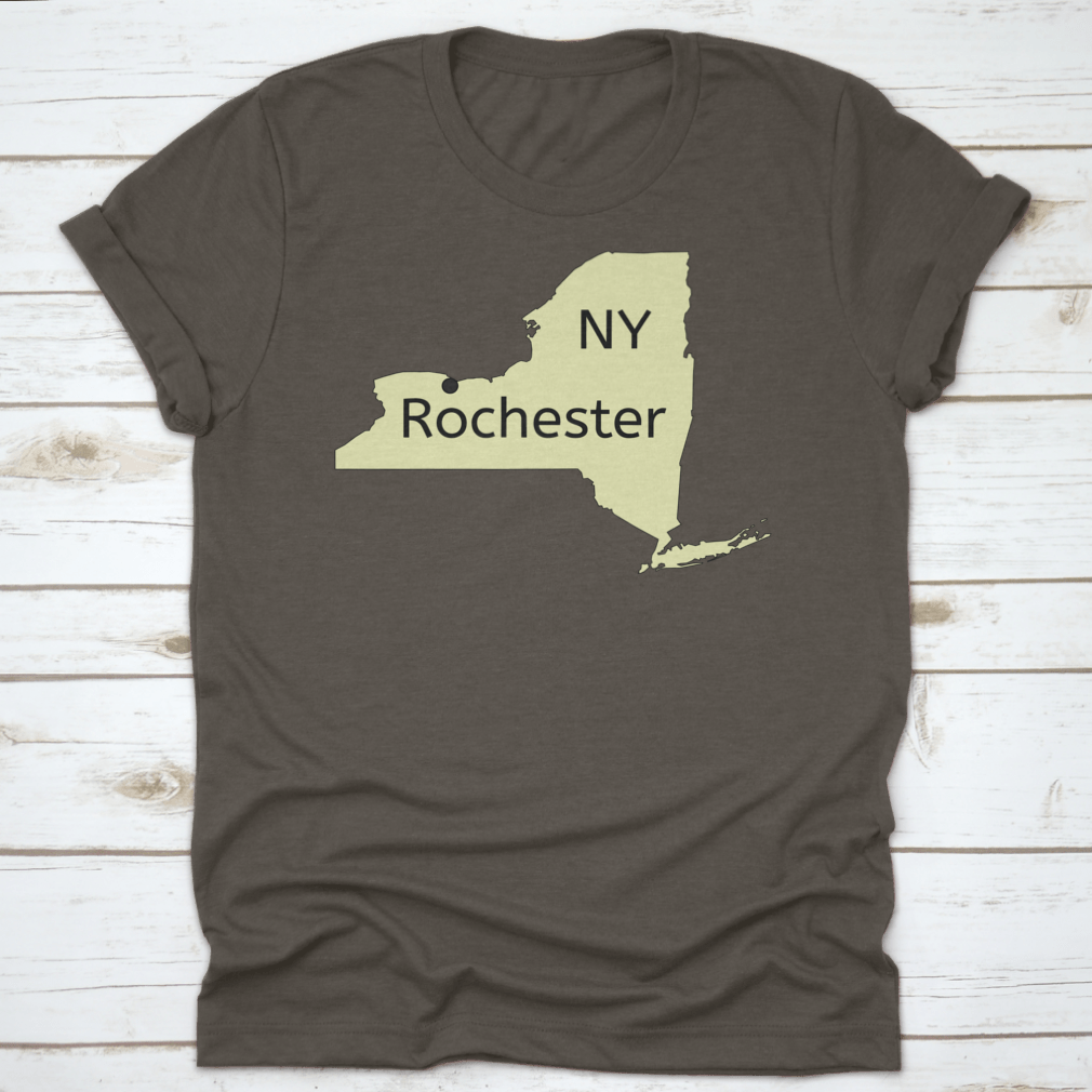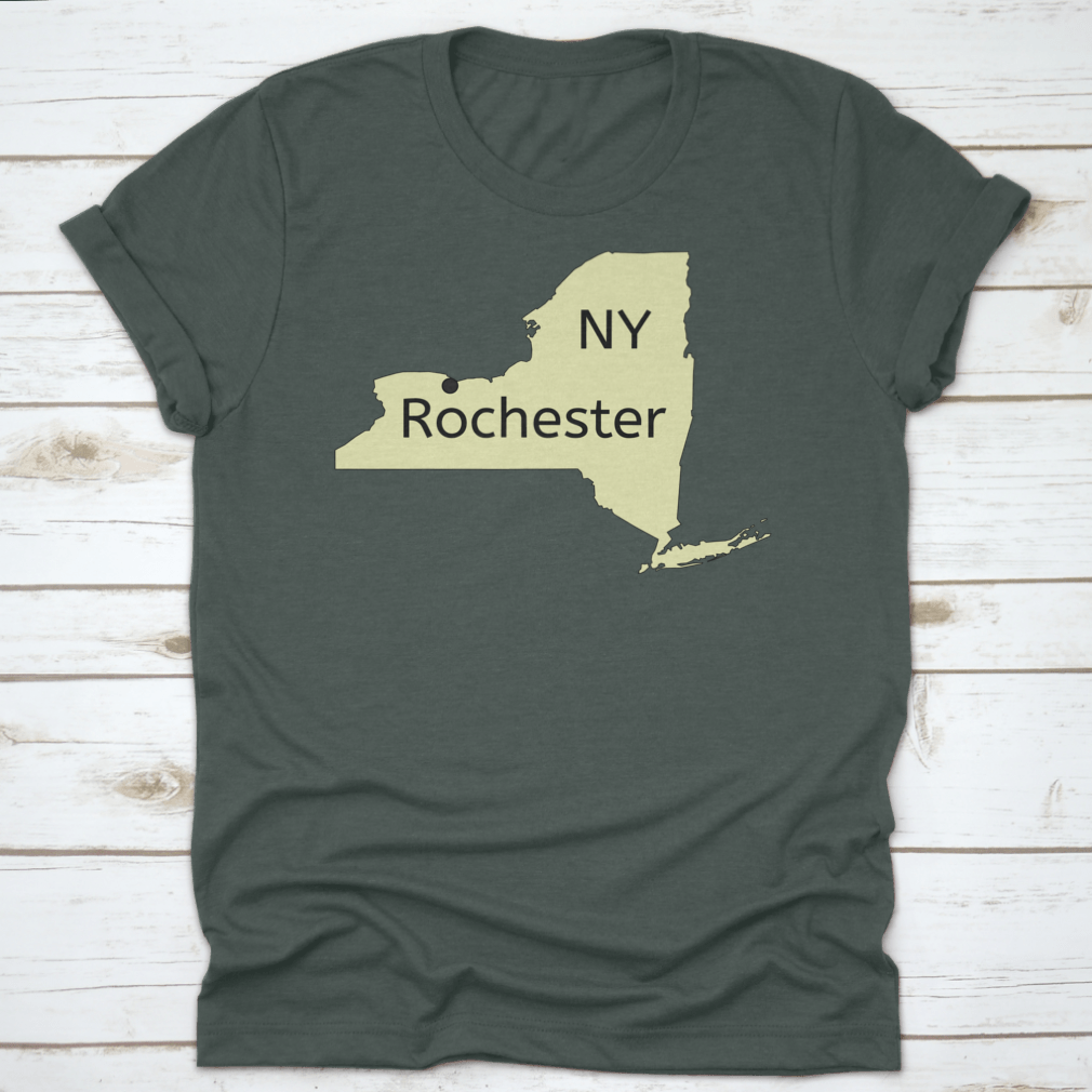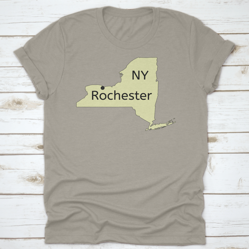 Illustration of Rochester City pinned location on New York map, displayed on a comfortable cotton tee.