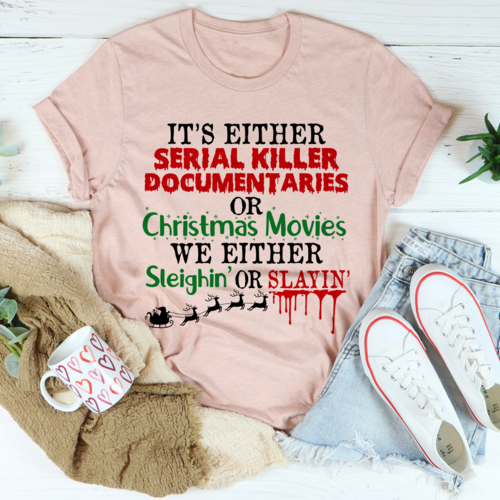 In summary, the "It's Either Serial Killer Documentaries or Christmas Movies Tee" is a fantastic addition to any wardrobe. With its high-quality materials, durable design, and ethical production, this t-shirt is perfect for anyone who loves to express their unique interests through fashion. Don't miss out on the chance to own this one-of-a-kind tee!