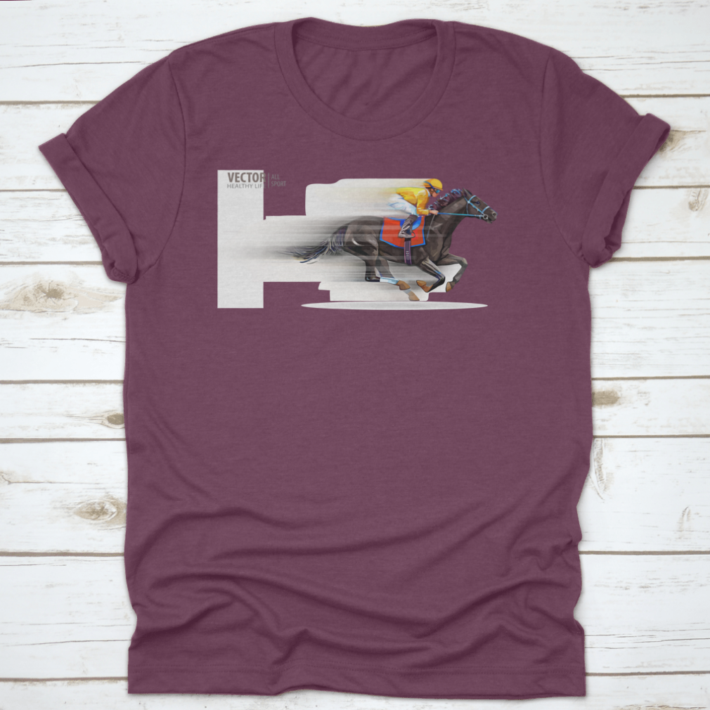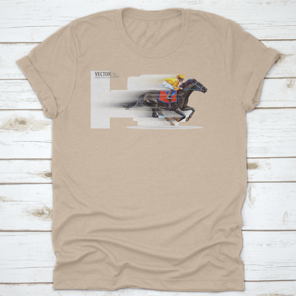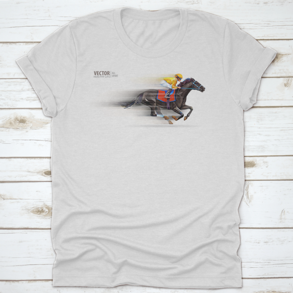 Introducing the Jockey On Racing Horse Racetrack Champion Vector Illustration Design, a must-have for any equestrian enthusiast or racing fan. This unique design captures the thrill of horse racing, showcasing a jockey in action on the racetrack. Made from high-quality materials, this apparel is perfect for both casual wear and special occasions.