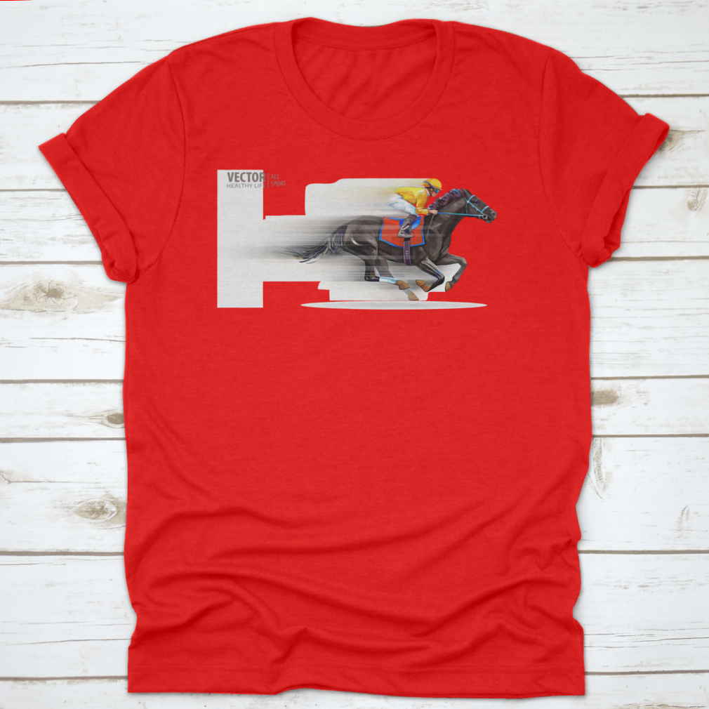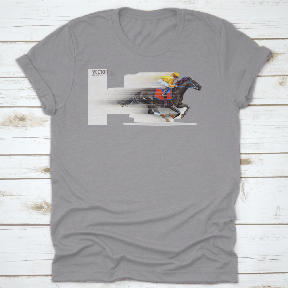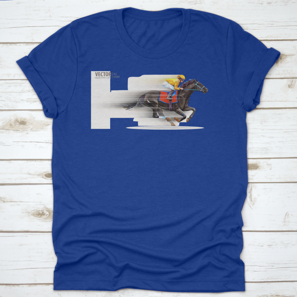 Introducing the Jockey On Racing Horse Racetrack Champion Vector Illustration Design, a must-have for any equestrian enthusiast or racing fan. This unique design captures the thrill of horse racing, showcasing a jockey in action on the racetrack. Made from high-quality materials, this apparel is perfect for both casual wear and special occasions.