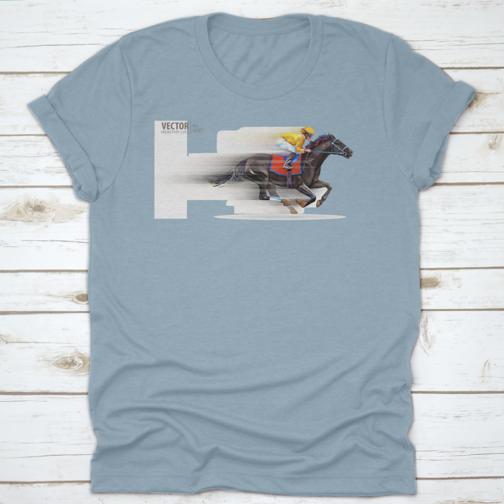 The standout feature of this apparel is the stunning vector illustration of a jockey on a racing horse. This eye-catching design not only represents the excitement of horse racing but also serves as a conversation starter. It's a unique piece that sets you apart from the crowd and showcases your passion for equestrian sports.