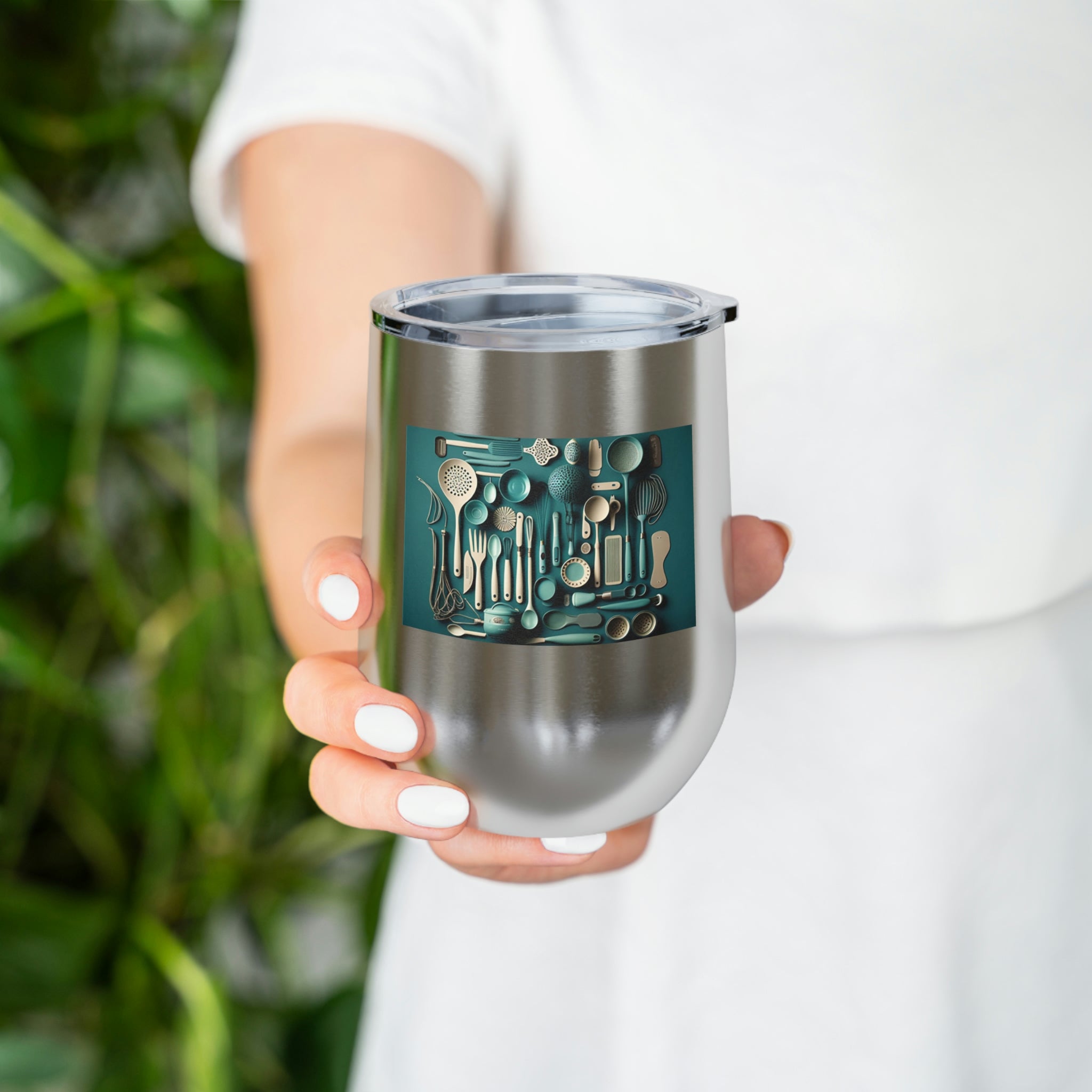 Introducing the Kitchen Utensils Wine Tumbler, the perfect companion for those who enjoy their beverages on the go. This stylish tumbler is designed to add a touch of personality to your drinkware collection while providing exceptional functionality. With its double insulation, this tumbler keeps your drinks hot or cold for extended periods, making it ideal for any occasion.
