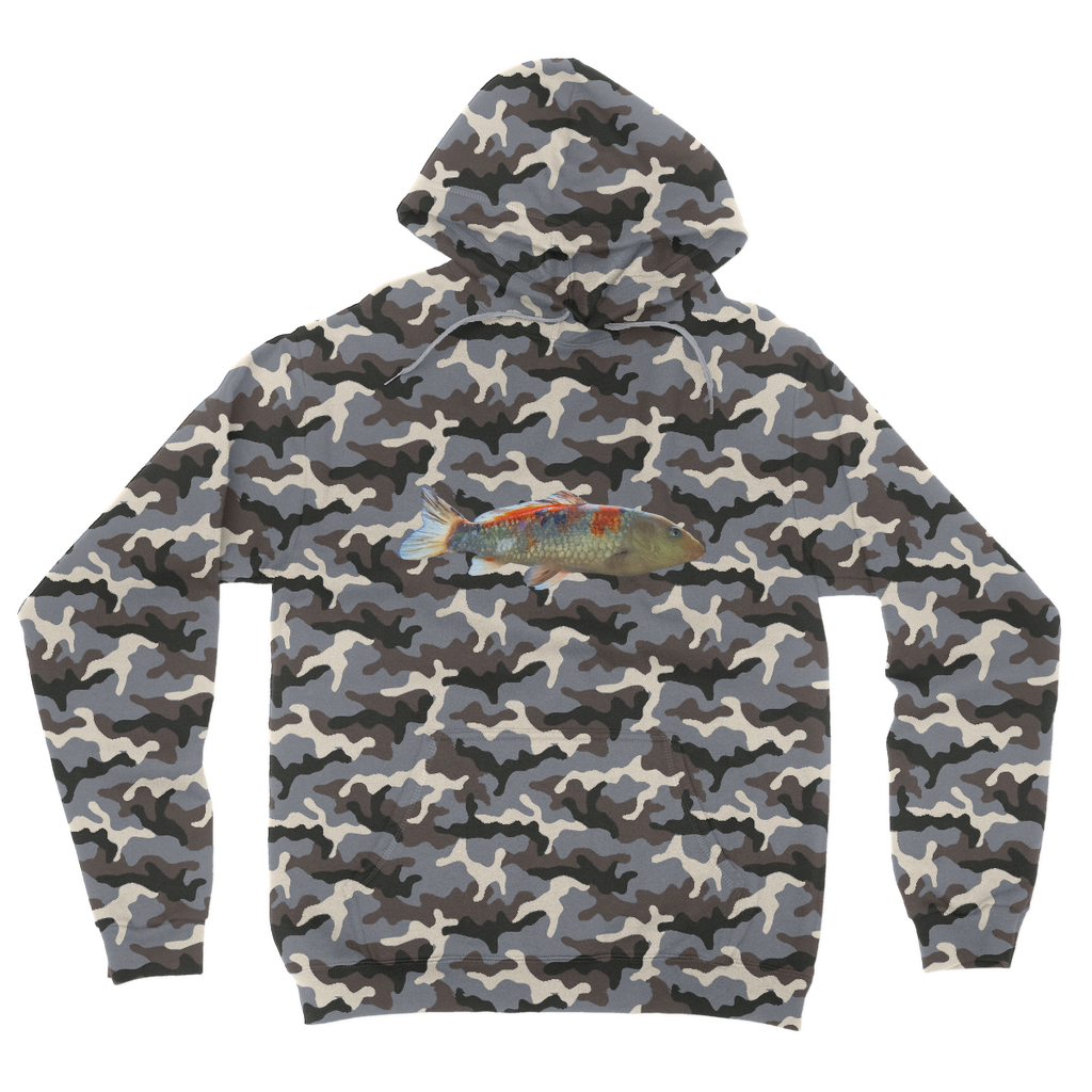 Introducing the Koi Fish Camouflage Adult Hoodie, a perfect blend of style and comfort that will elevate your casual wardrobe. This hoodie features a striking all-over camouflage design that incorporates the beauty of Koi fish, making it a standout piece for any fashion-forward individual. Whether you're heading out for a casual day or lounging at home, this hoodie is designed to keep you looking trendy and feeling comfortable.