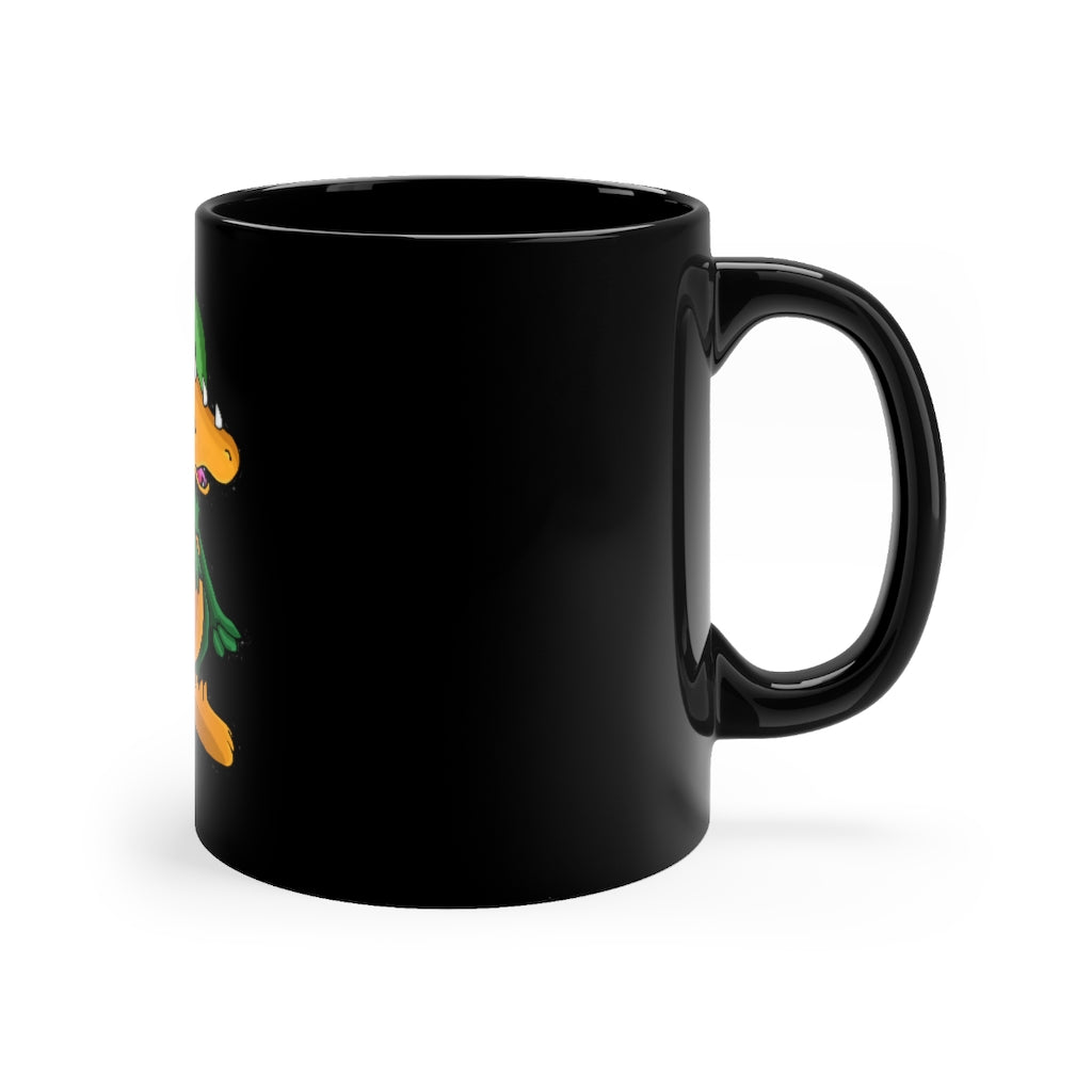 Leafasaur Black mug 11oz, featuring a sleek black ceramic design with rounded corners and a comfortable C-handle.