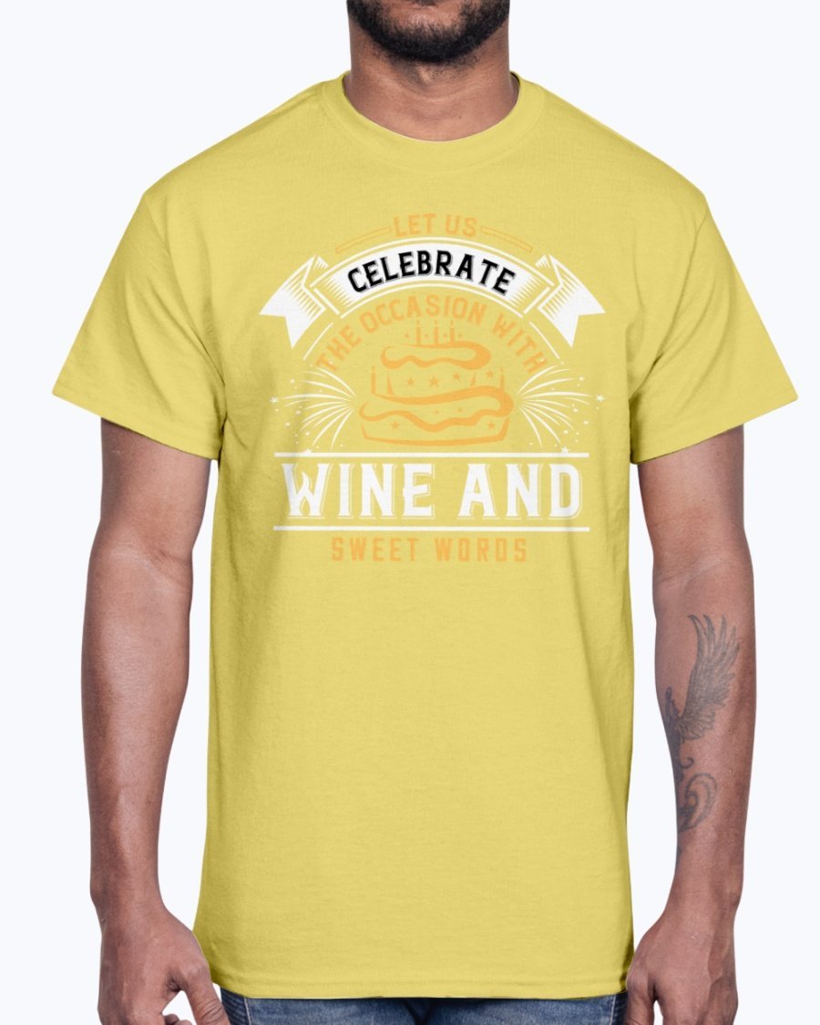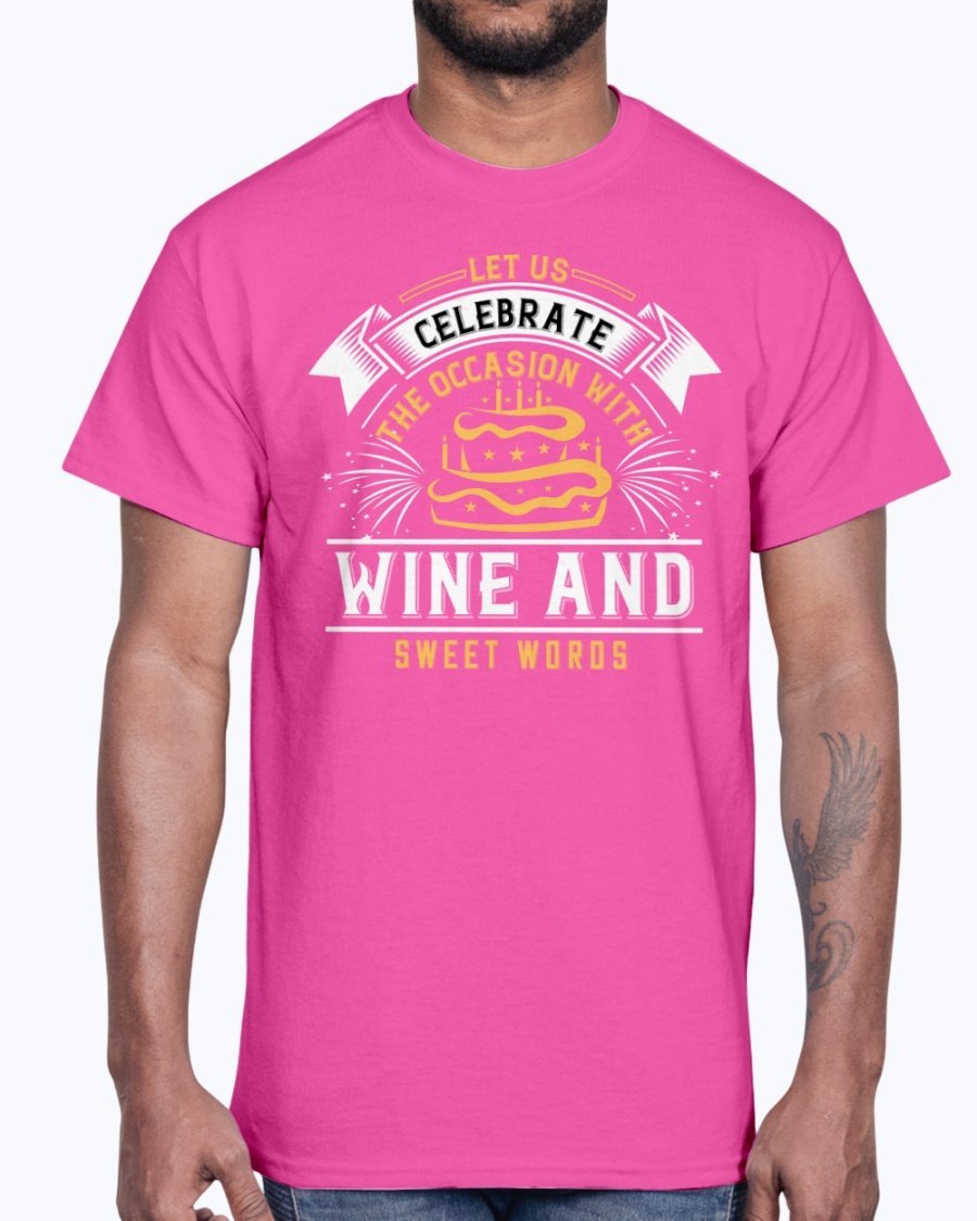 Celebrate special occasions with our unique Cotton Tee that beautifully combines the joy of wine and sweet words. This tee is perfect for birthdays, gatherings, or any festive event where you want to express your love and appreciation. Made from 100% preshrunk cotton, it ensures a comfortable fit that lasts through many celebrations.