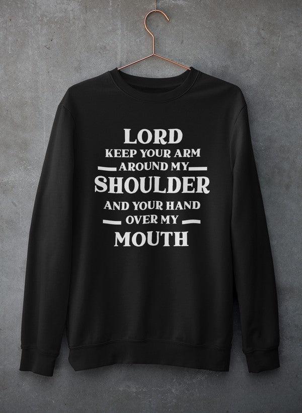 The Lord Keep Your Arm Around My Shoulder Sweat Shirt is not just a piece of clothing; it's a statement of style and comfort. Designed for those who appreciate both fashion and function, this sweatshirt is perfect for casual outings, lounging at home, or even a cozy night out with friends. Made from a high-quality cotton/poly fleece blend, it offers a soft and warm feel against your skin, making it an ideal choice for cooler weather.