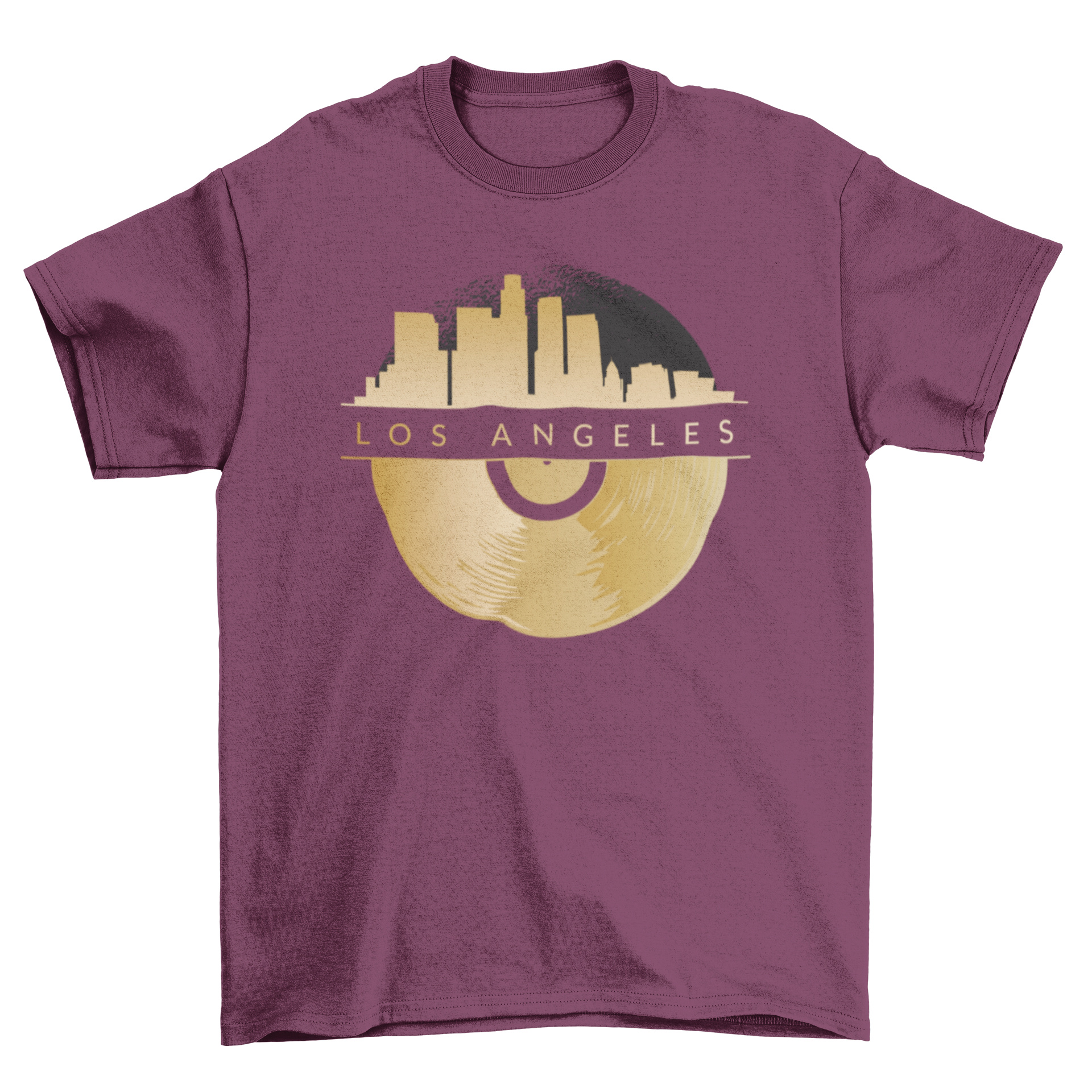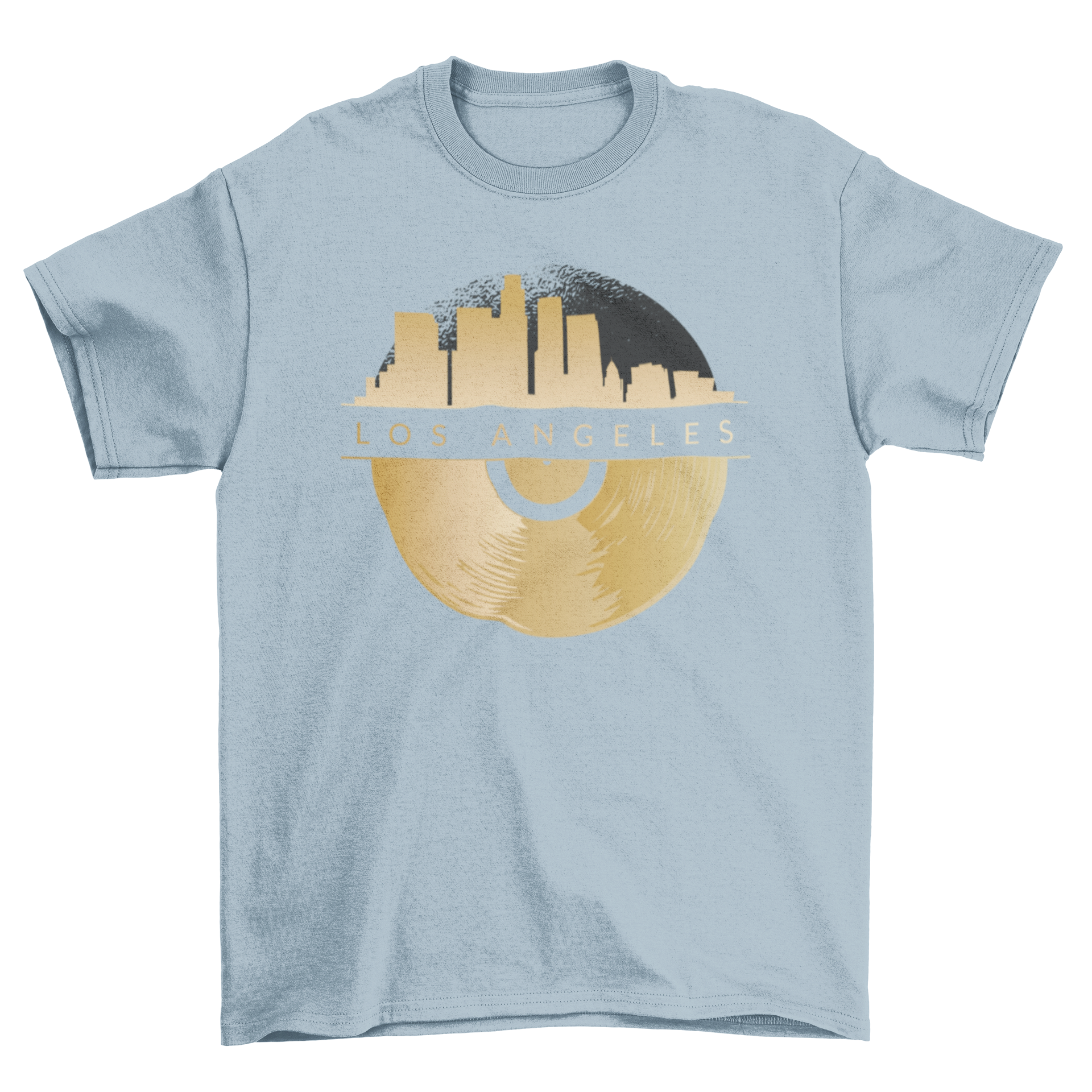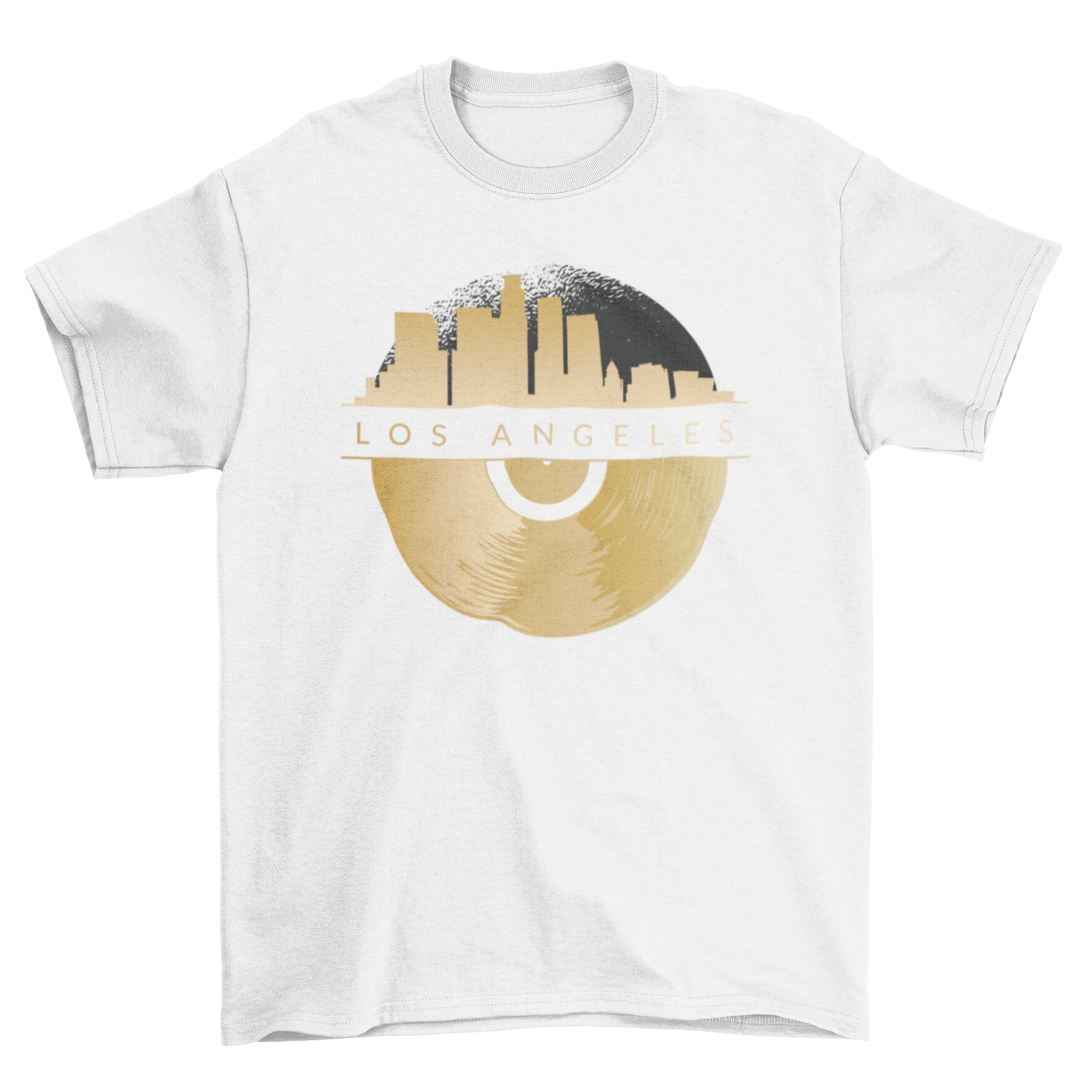Introducing the Los Angeles Skyline Vinyl T-shirt, a perfect blend of style and passion for music and the iconic city of Los Angeles. This unique t-shirt features a beautifully designed skyline of LA, showcasing its famous landmarks, paired with a striking golden vinyl record underneath. Whether you're a local or just love the vibrant culture of Los Angeles, this t-shirt is a must-have addition to your wardrobe.