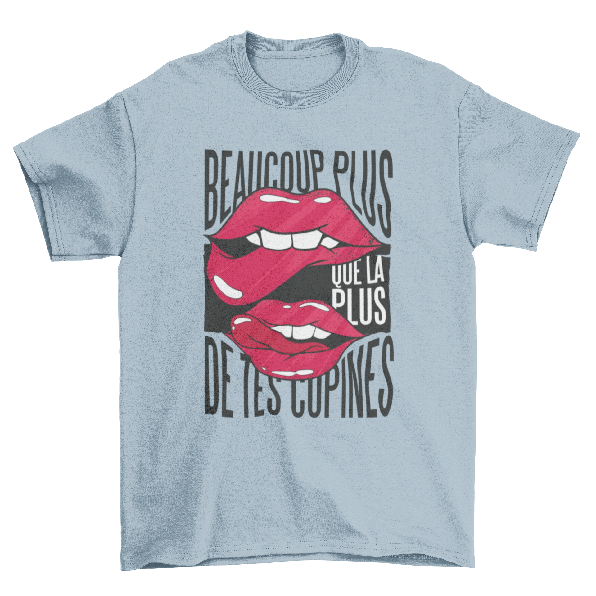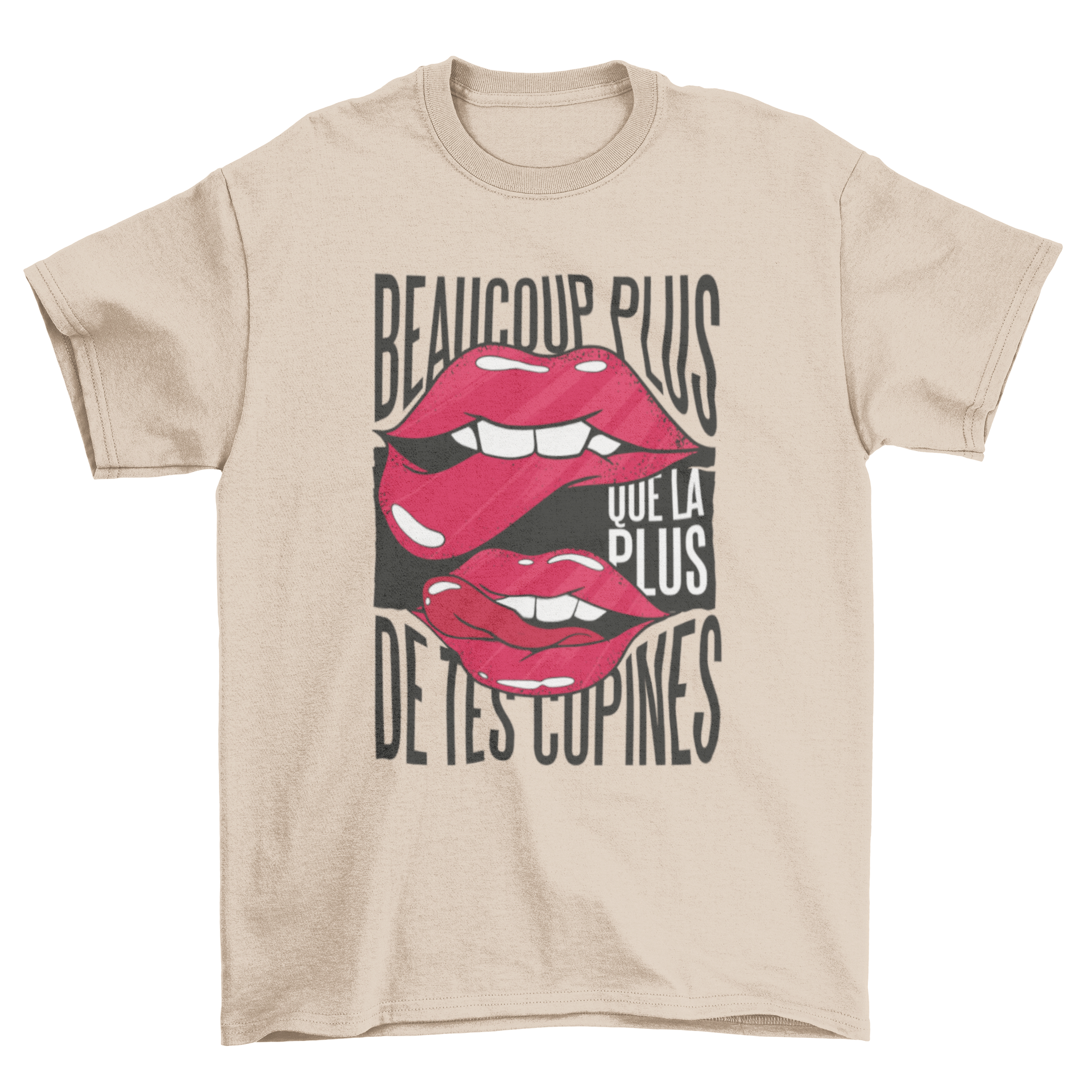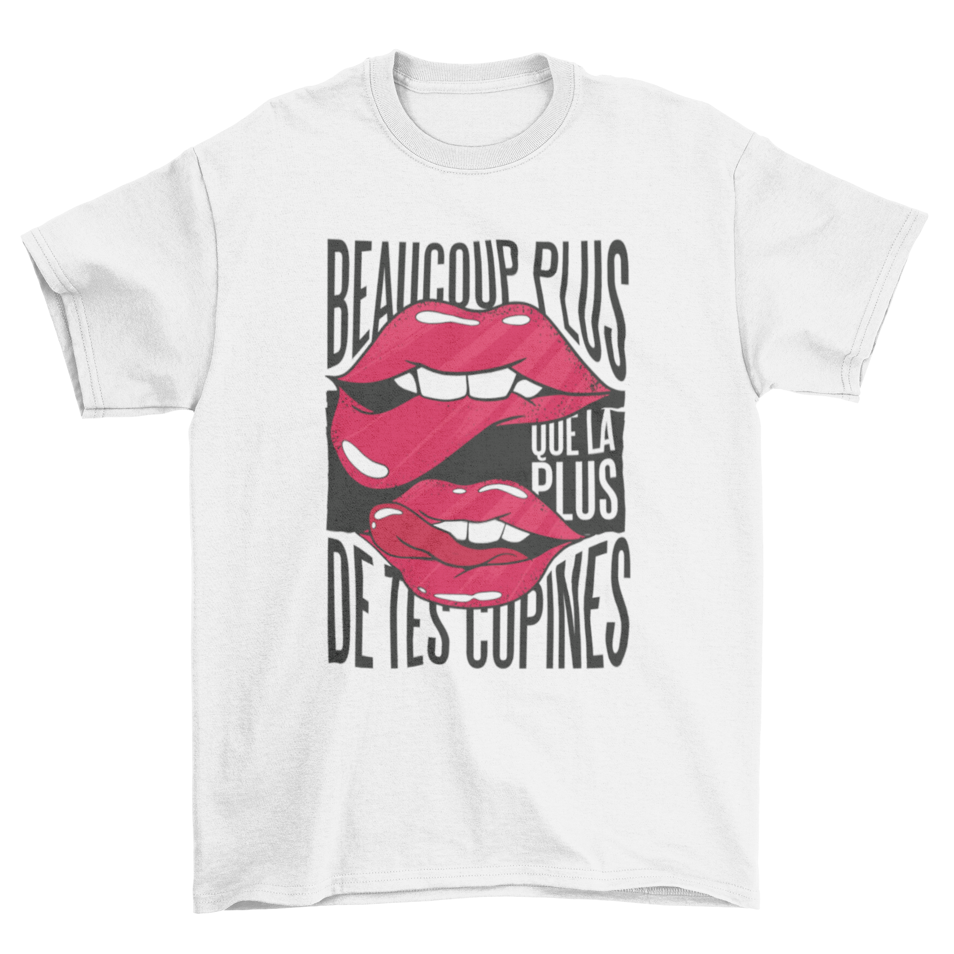 A stylish T-shirt featuring sexy lips and a French quote, perfect for casual wear.