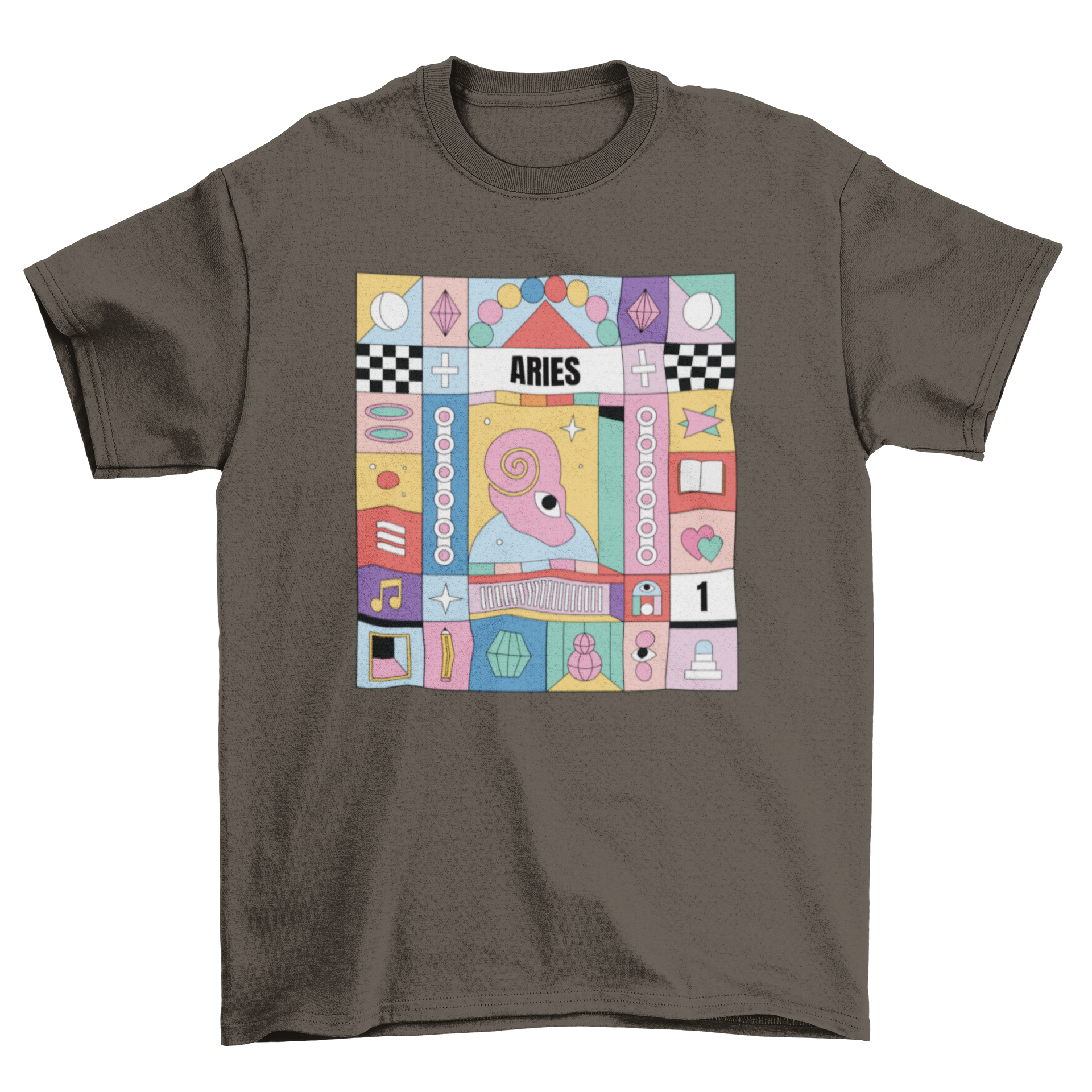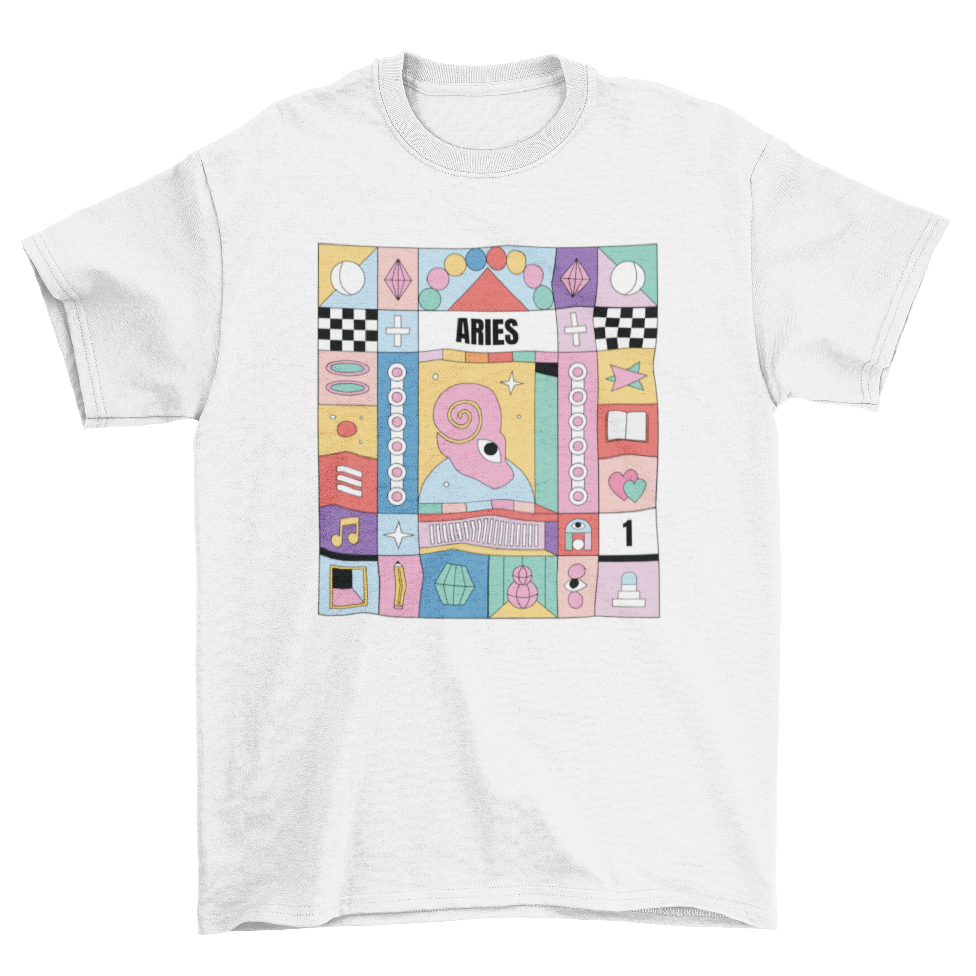 The t-shirt features a stunning display of elements associated with Aries, including its symbol and colors that resonate with the fiery nature of this zodiac sign. The design is not only eye-catching but also meaningful, allowing you to express your astrological identity in a fashionable way. Each detail is crafted to celebrate the bold and adventurous spirit of Aries.