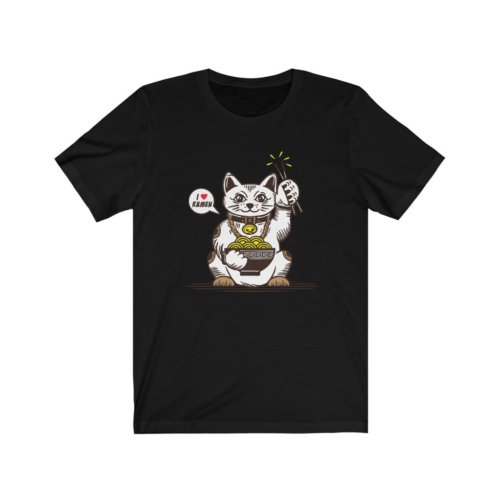 Overall, the Lucky Cat I Love Ramen T-shirt is a must-have for anyone who enjoys casual, comfortable clothing with a fun twist. Its combination of quality materials, unisex design, and durable print make it a standout choice for ramen lovers everywhere. Don't miss out on the chance to add this delightful T-shirt to your wardrobe!