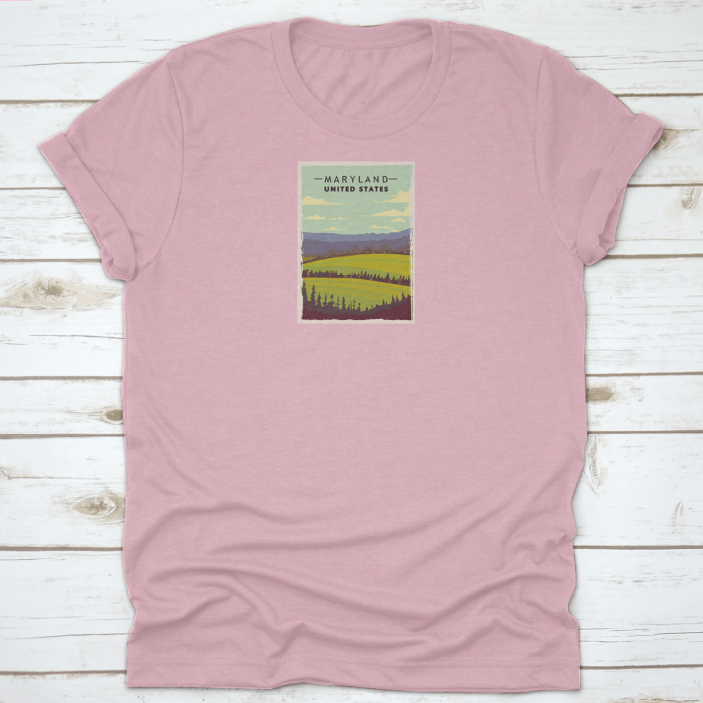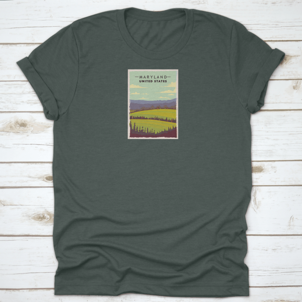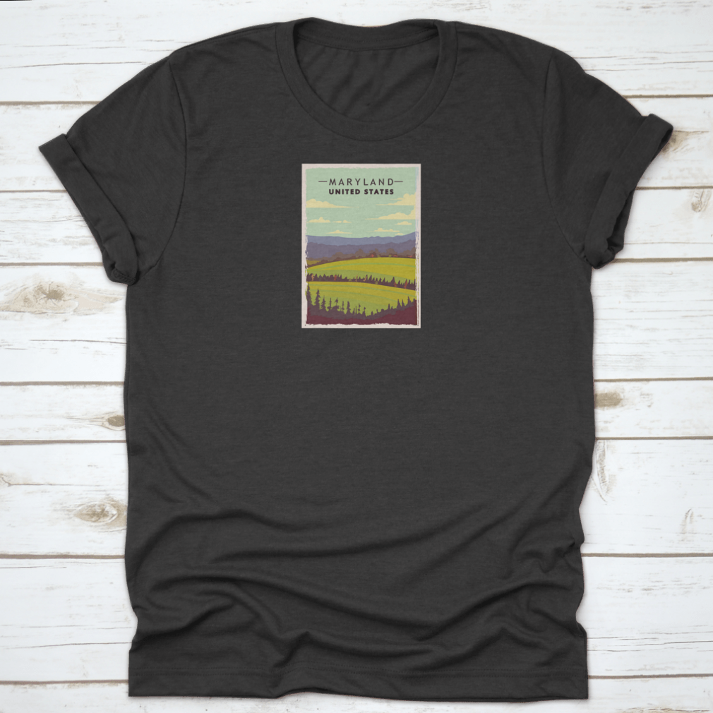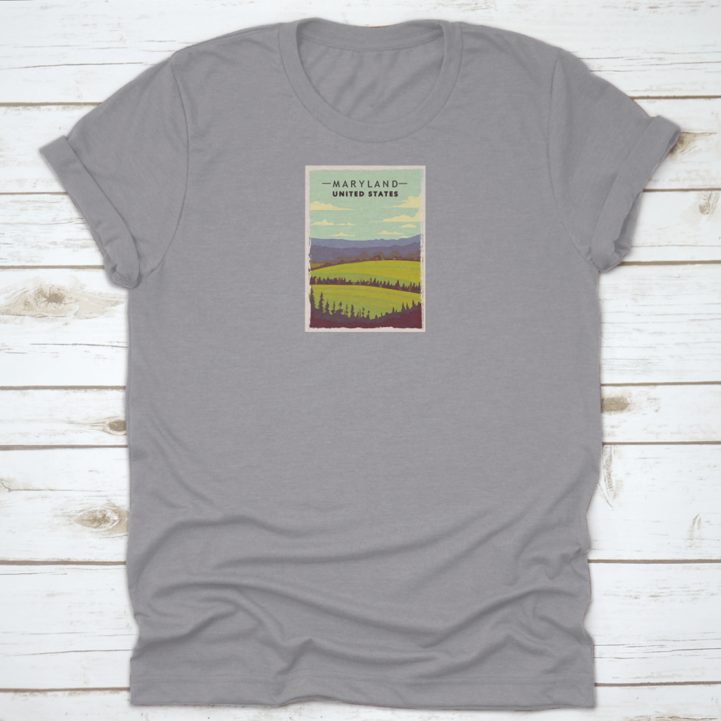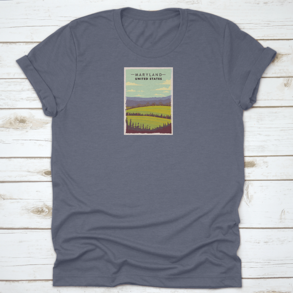 Our Maryland retro poster is printed on 100% cotton fabric, ensuring a soft and durable finish. For those who prefer a blend, the Sport Grey option features a 90/10 cotton/polyester mix, while the Heather colors are made from a comfortable 50/50 cotton/polyester blend. This variety allows you to choose the perfect fabric that suits your style and comfort needs.