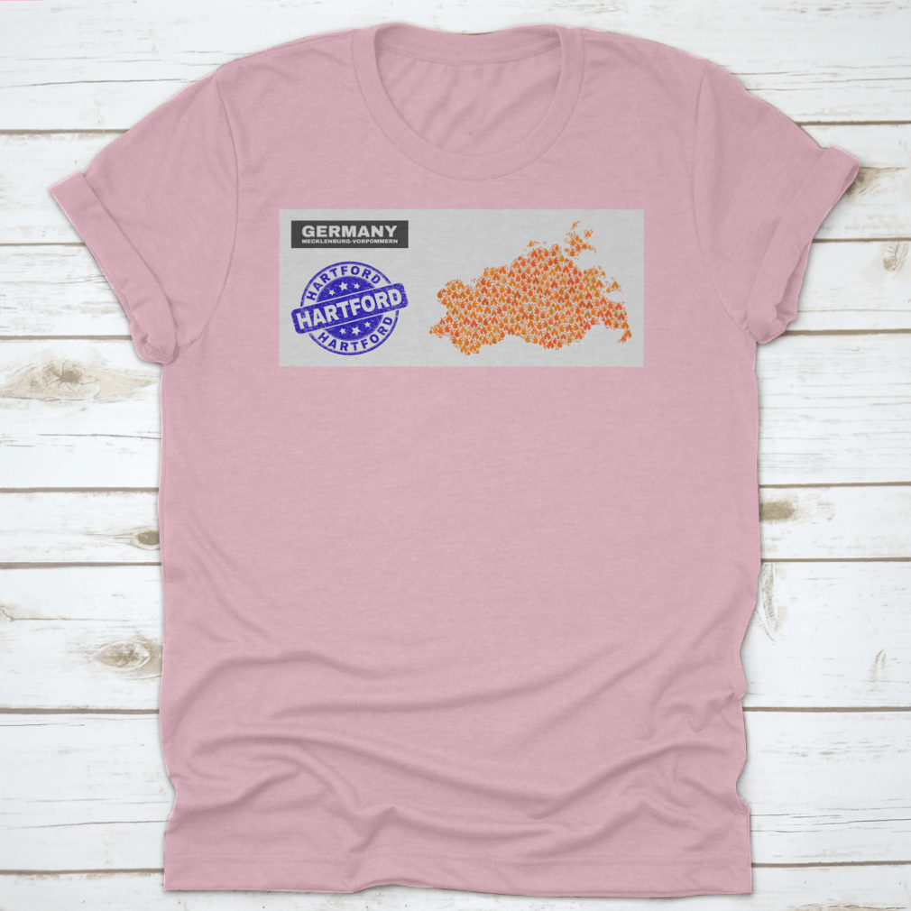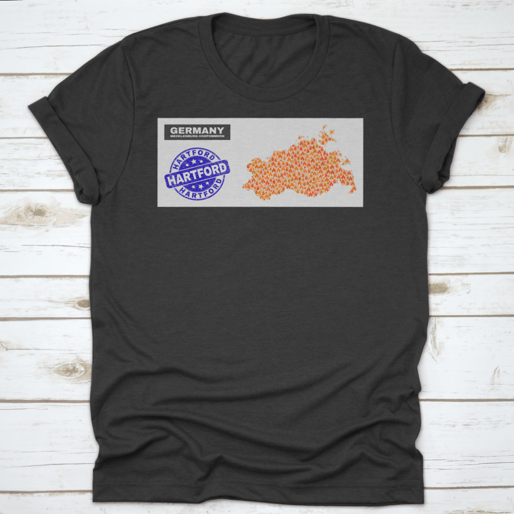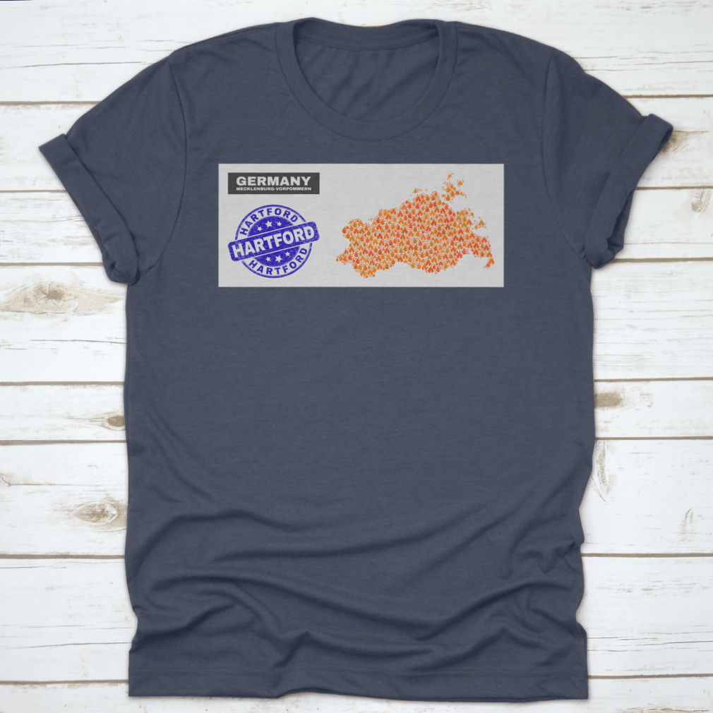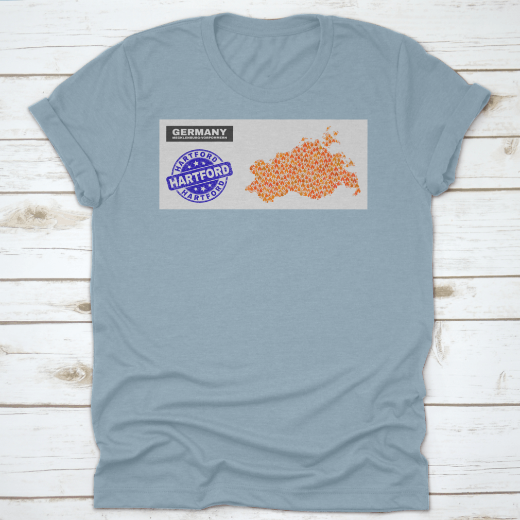 Mecklenburg-Vorpommern Land Map featuring a blue round grunge Hartford stamp design on a cotton garment.