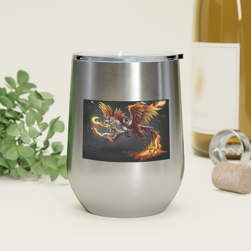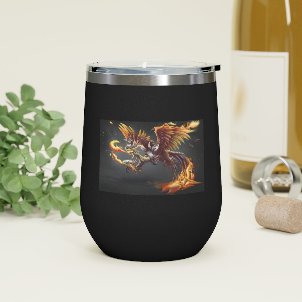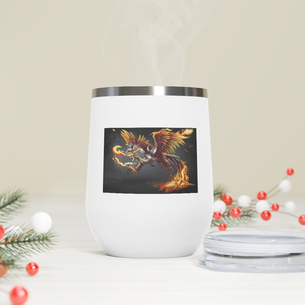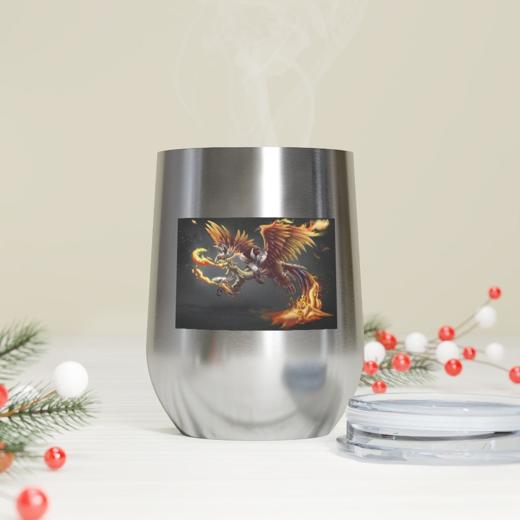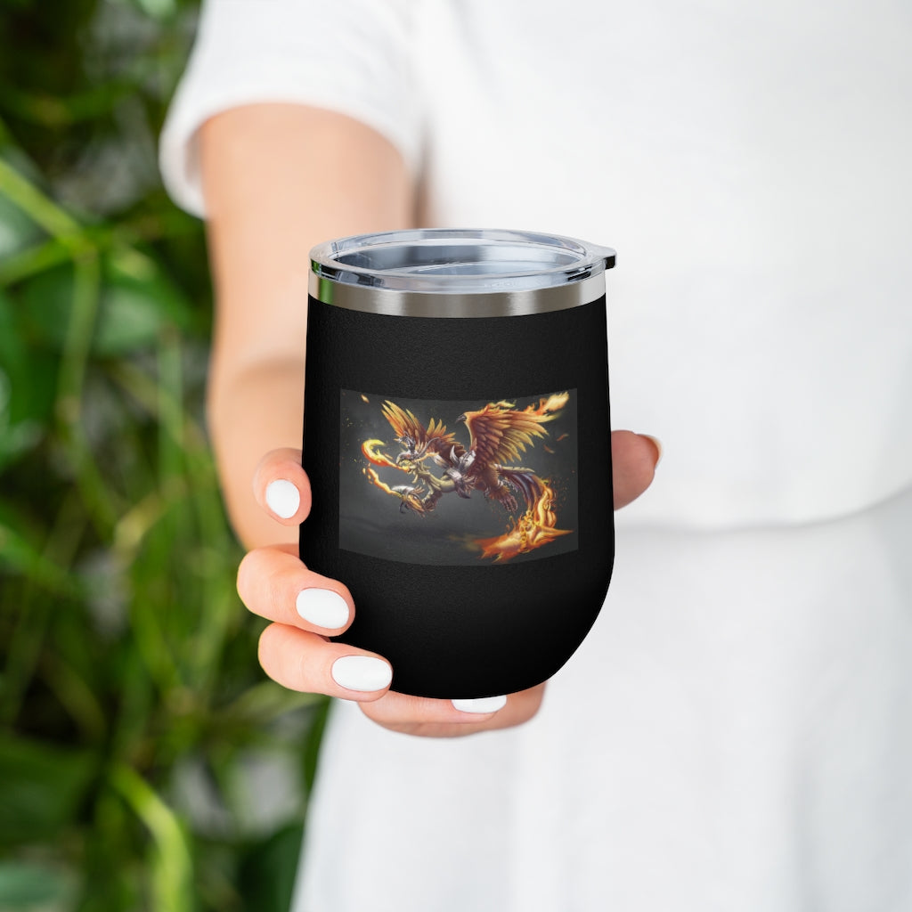 The Merciless the Flaming SkyBird 12oz Insulated Wine Tumbler is the perfect companion for those who appreciate both style and functionality in their drinkware. This tumbler is designed to keep your beverages at the ideal temperature, whether you prefer a hot cup of coffee or a chilled glass of wine. With its double-wall vacuum insulation, this tumbler ensures that your drinks stay hot or cold for longer periods, making it an essential item for any outing.