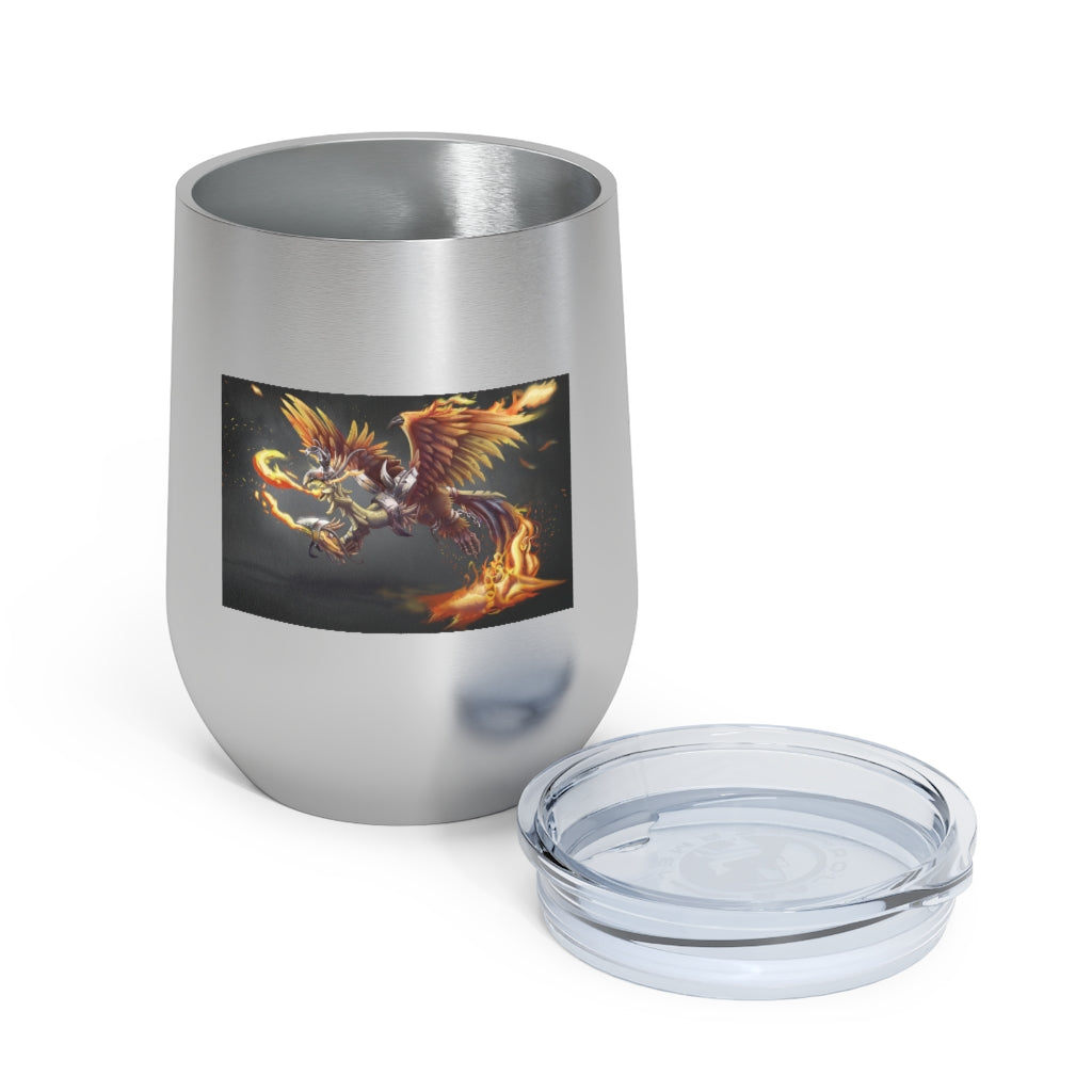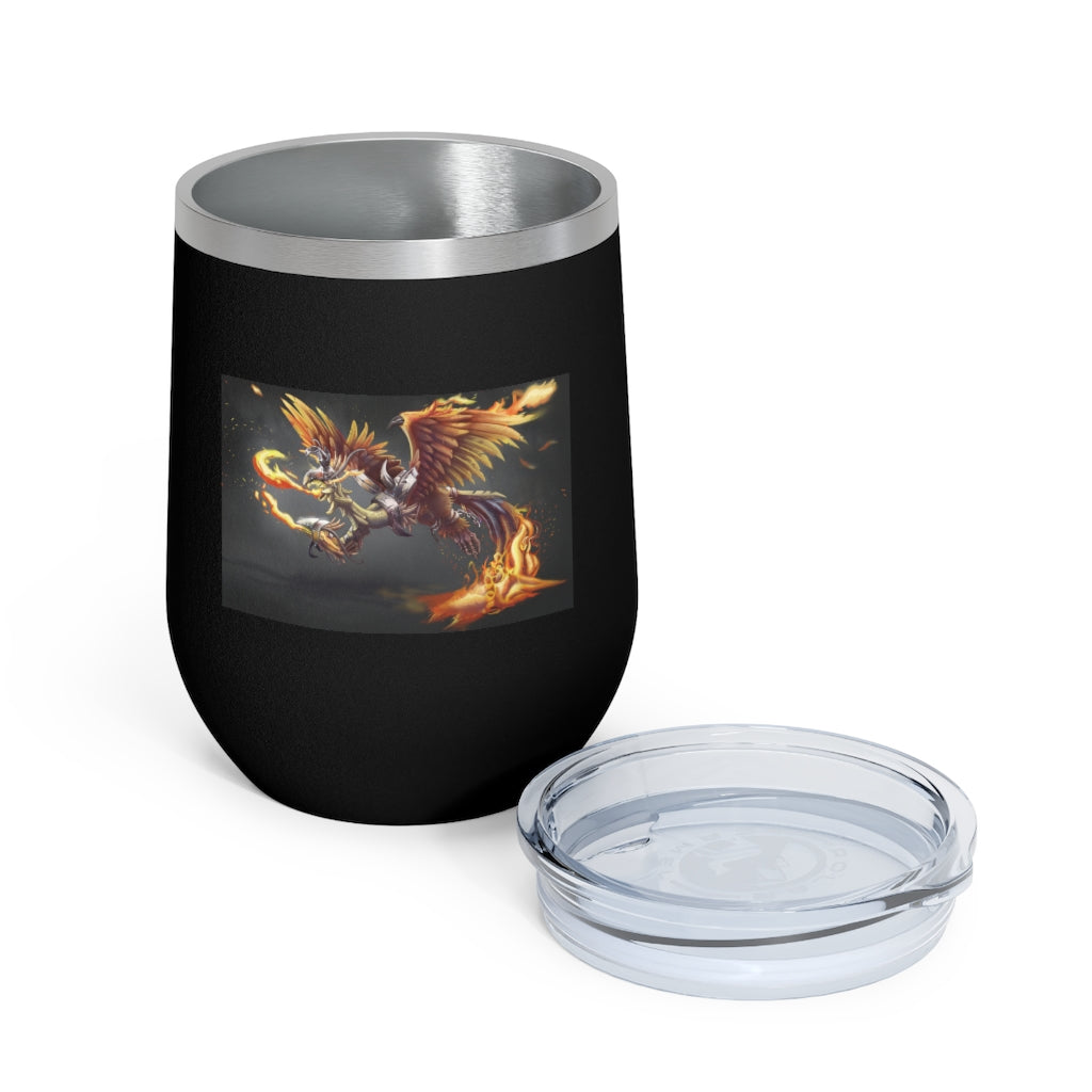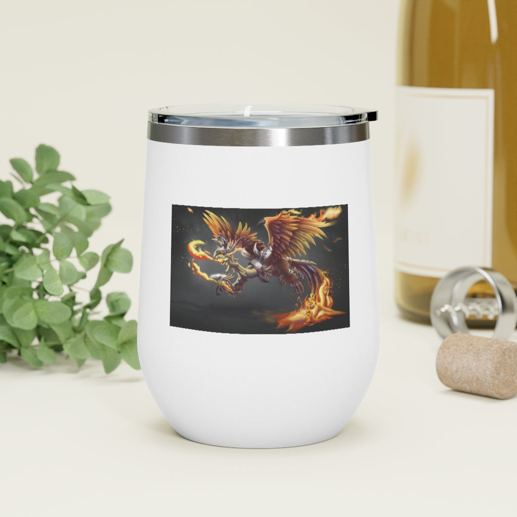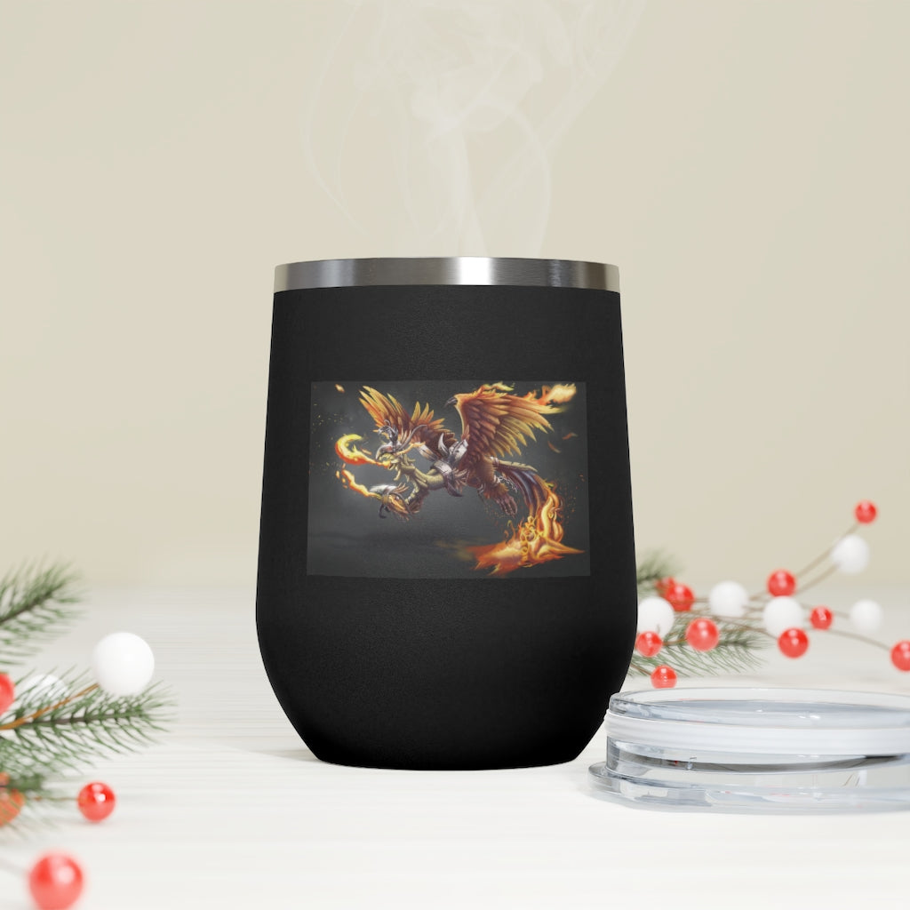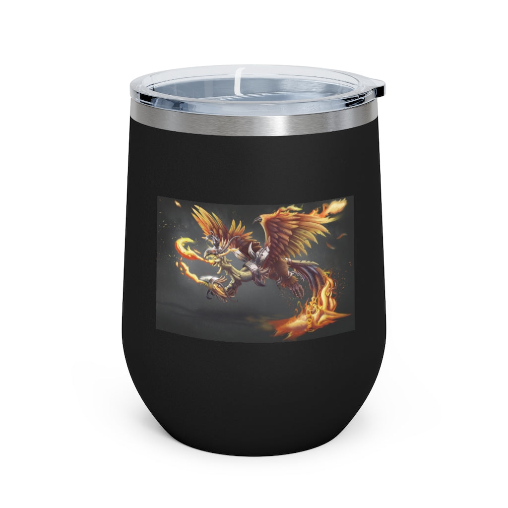 The Merciless the Flaming SkyBird 12oz Insulated Wine Tumbler is the perfect companion for those who appreciate both style and functionality in their drinkware. This tumbler is designed to keep your beverages at the ideal temperature, whether you prefer a hot cup of coffee or a chilled glass of wine. With its double-wall vacuum insulation, this tumbler ensures that your drinks stay hot or cold for longer periods, making it an essential item for any outing.