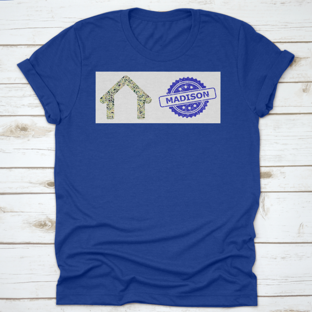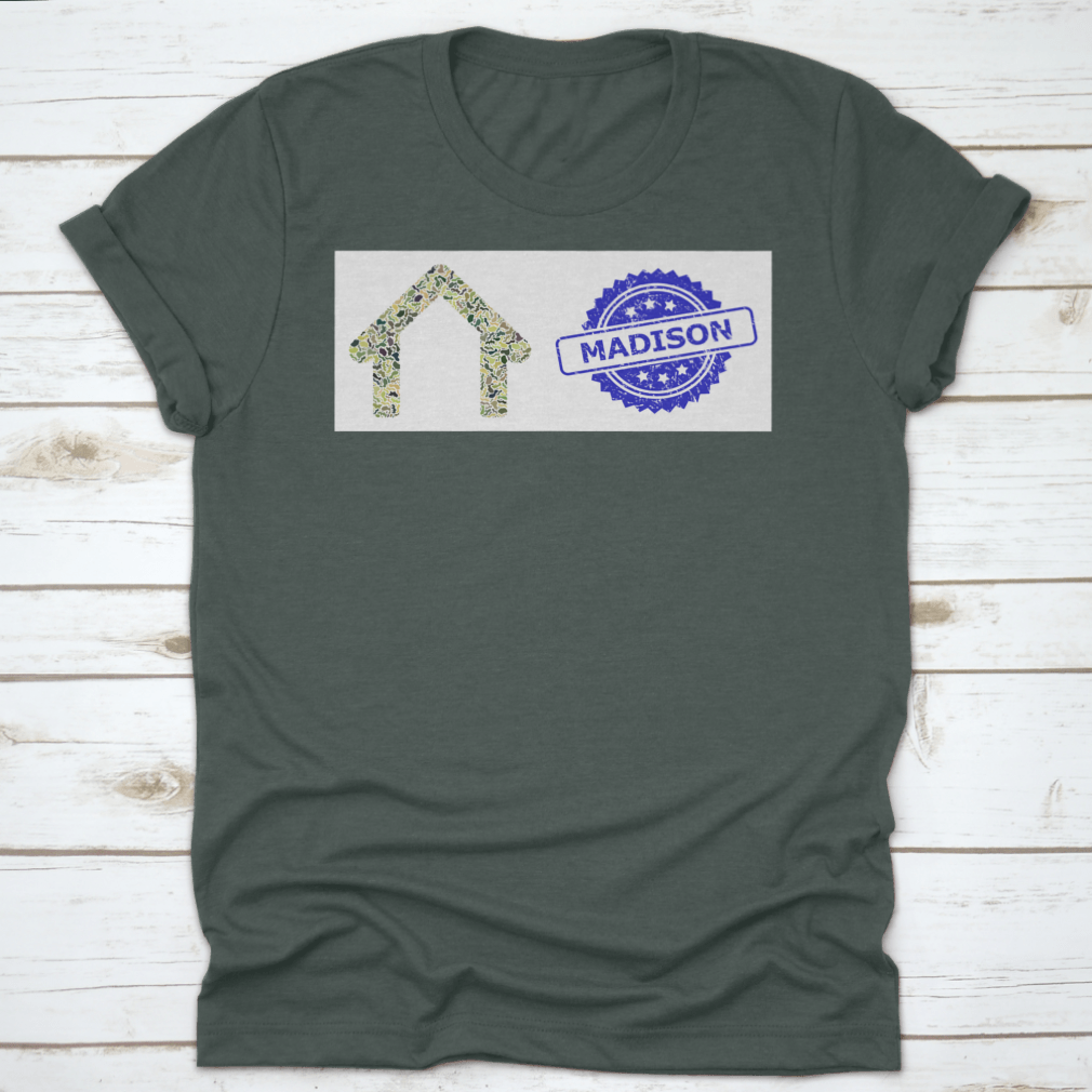 Introducing the Military Camouflage Collage Of Garage And Madison Scratched Rosette T-shirt, a perfect blend of style and comfort. Made from 100% cotton, this t-shirt is designed to provide a soft and breathable experience, making it ideal for everyday wear. The unique camouflage collage design adds a trendy touch, making it a great choice for casual outings or relaxed weekends.