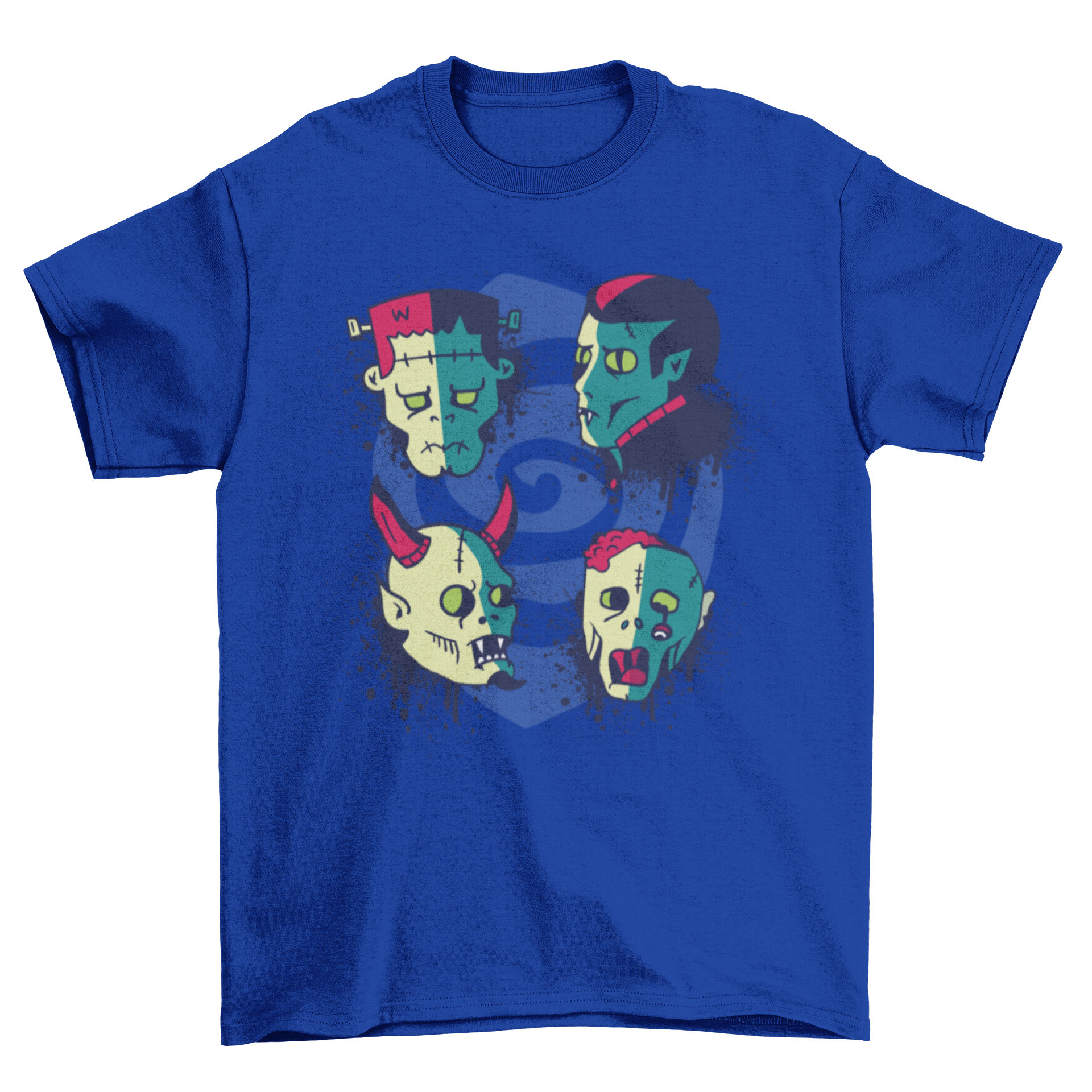 Introducing our Monster Faces T-shirt, a must-have for anyone looking to embrace the spooky spirit of Halloween! This unique t-shirt features an eye-catching design that showcases four iconic monsters: Frankenstein, a vampire, a demon, and a zombie. Each illustration is crafted with intricate details that bring these classic horror characters to life, making it a perfect addition to your Halloween wardrobe.