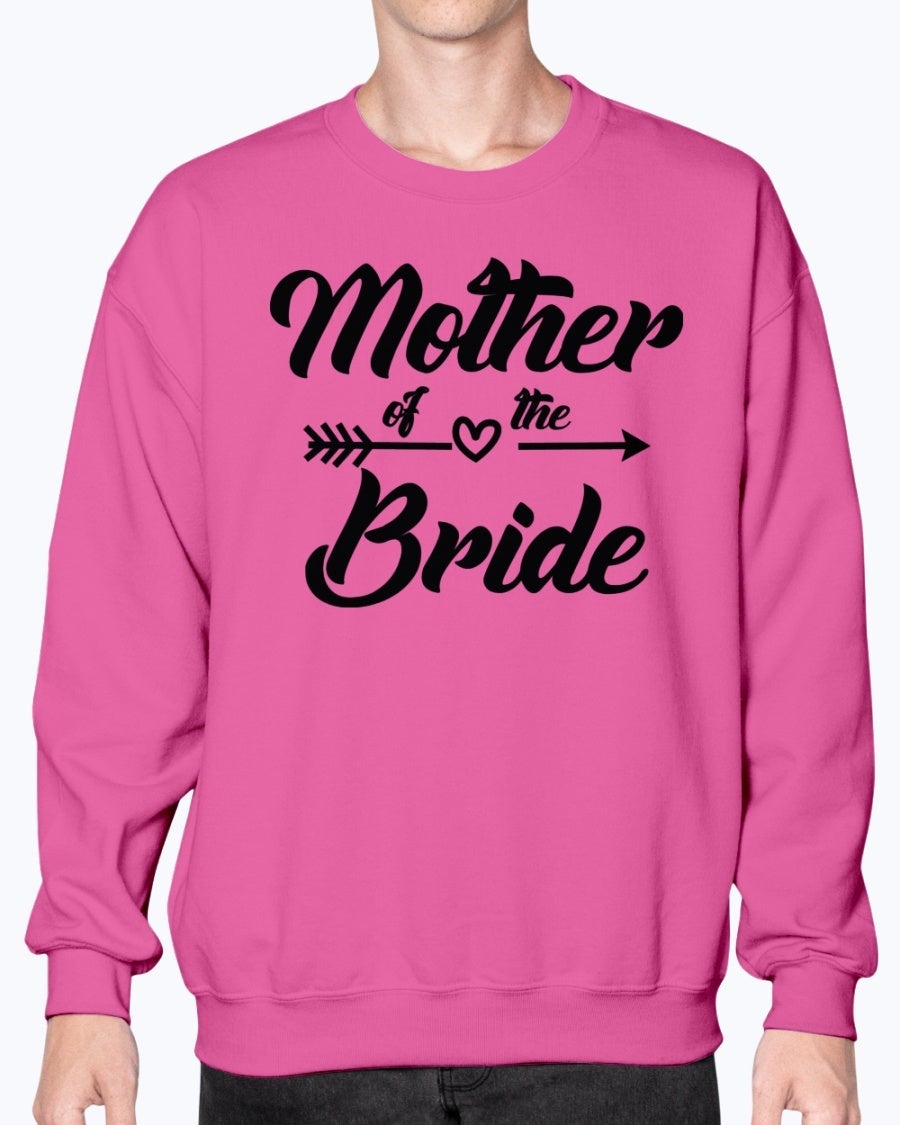 Introducing our exclusive Mother of the Bride Sweatshirt, designed specifically for the special day when your daughter ties the knot. This stylish crew sweatshirt is not only a fashionable choice but also a comfortable option for the mother of the bride to wear during the wedding festivities. Made from high-quality materials, this sweatshirt ensures that you look great while feeling cozy.