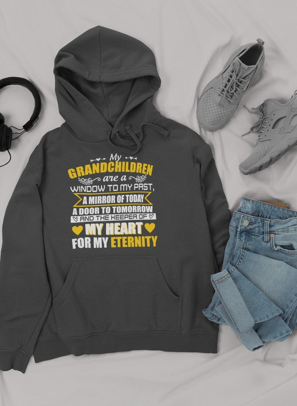 Discover the perfect blend of comfort and style with our hoodie, titled 'My Grandchildren Are A Window To My Past A Mirror Of Today A Door To'. This unique piece is designed by hundreds of talented artists, allowing you to express your individuality while staying cozy and warm. Made from a high-quality cotton/poly fleece blend, this hoodie features a super warm fleece lining that ensures you stay comfortable in any weather.