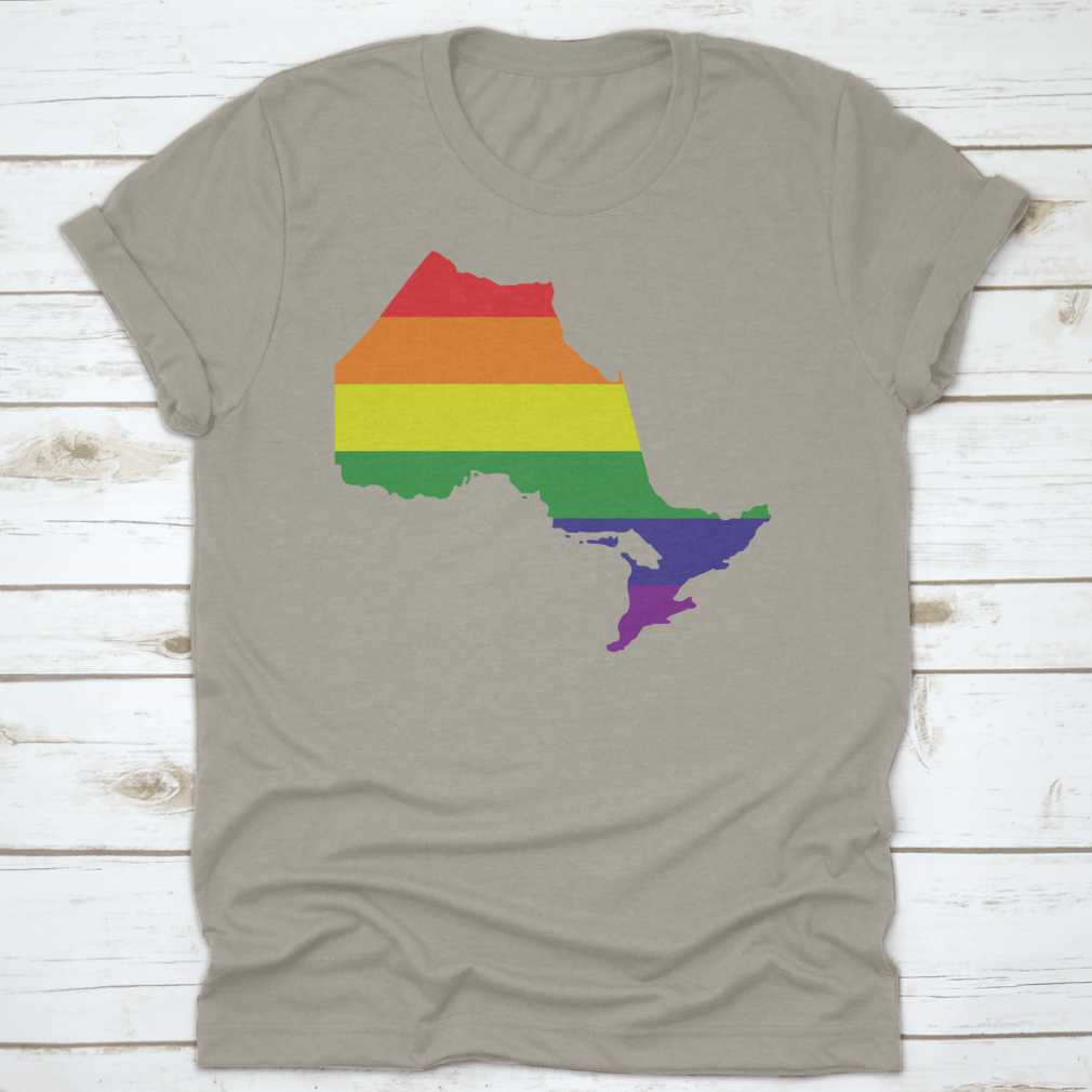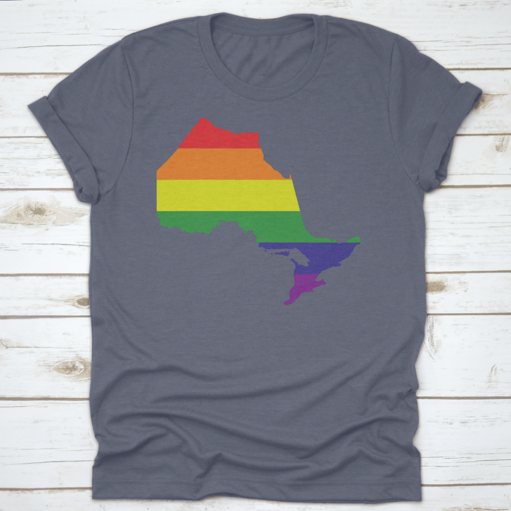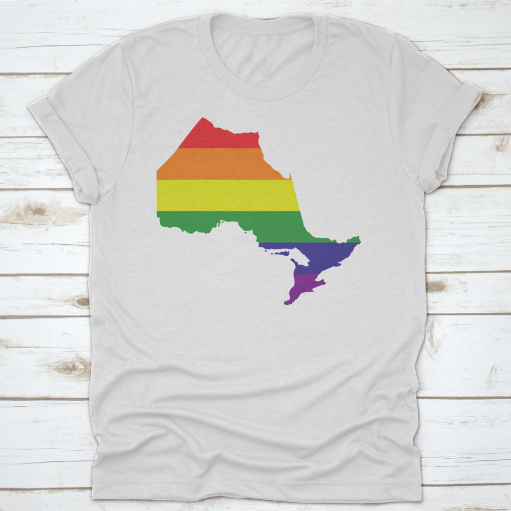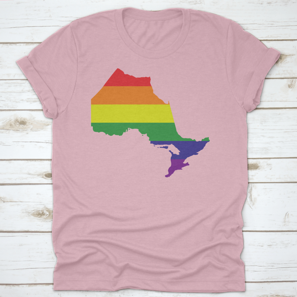 Ontario Map shirt featuring the LGBT flag, showcasing vibrant colors and a classic fit.
