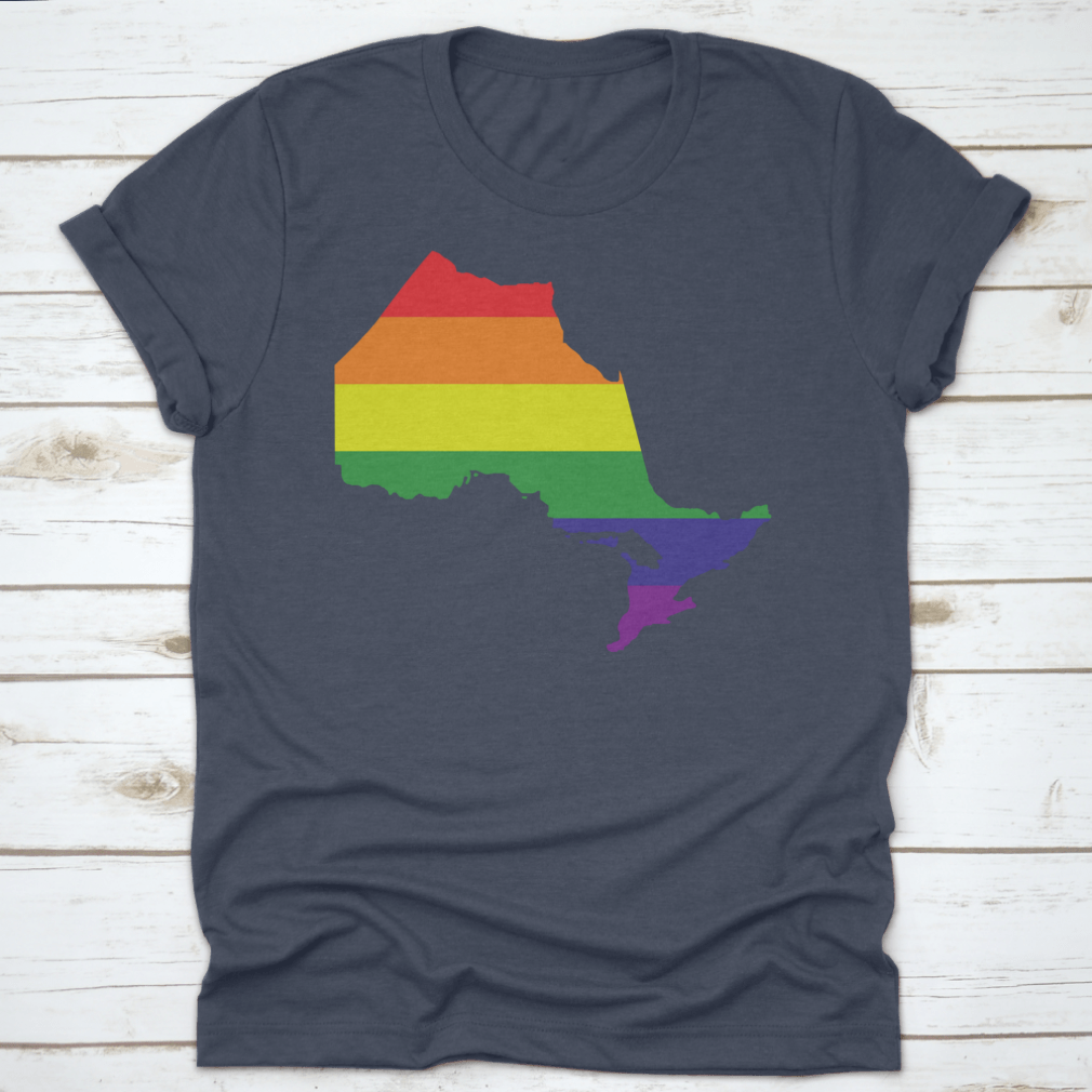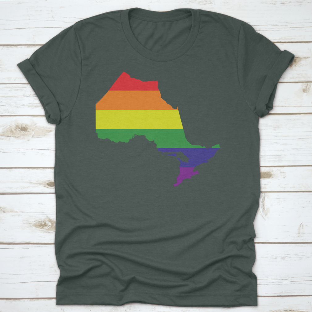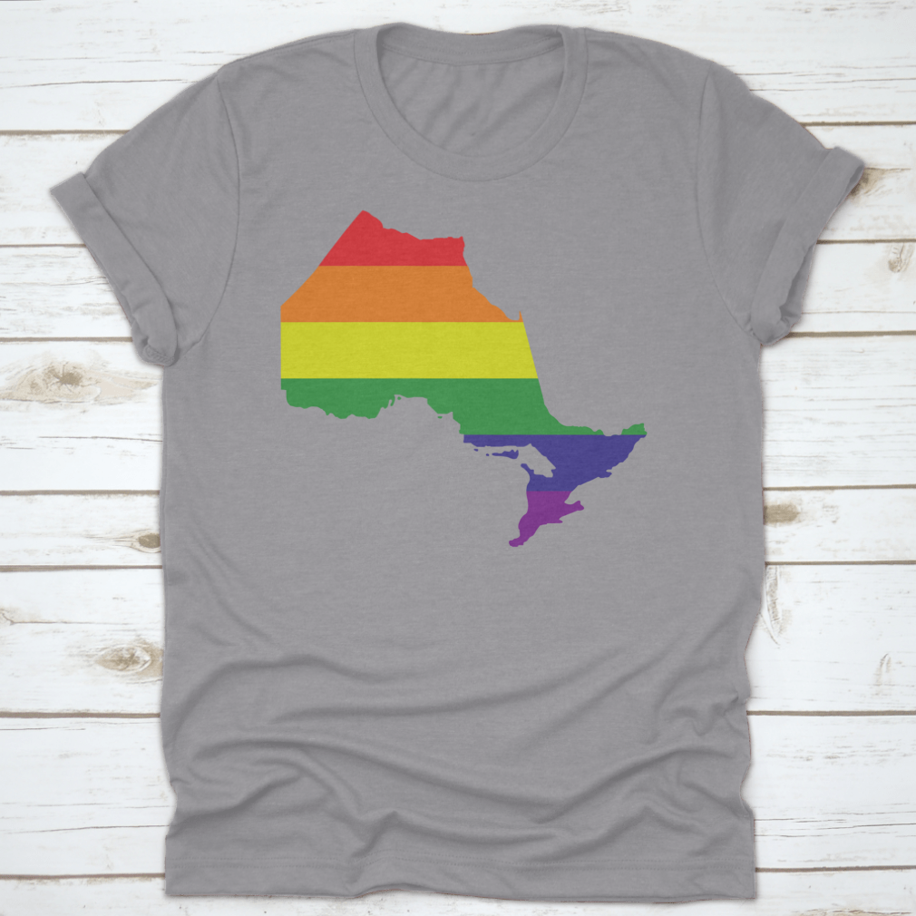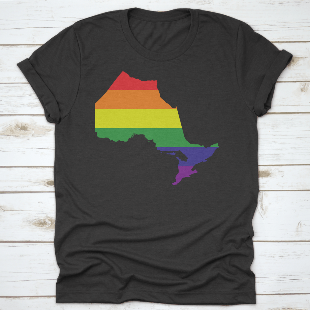 Ontario Map shirt featuring the LGBT flag, showcasing vibrant colors and a classic fit.