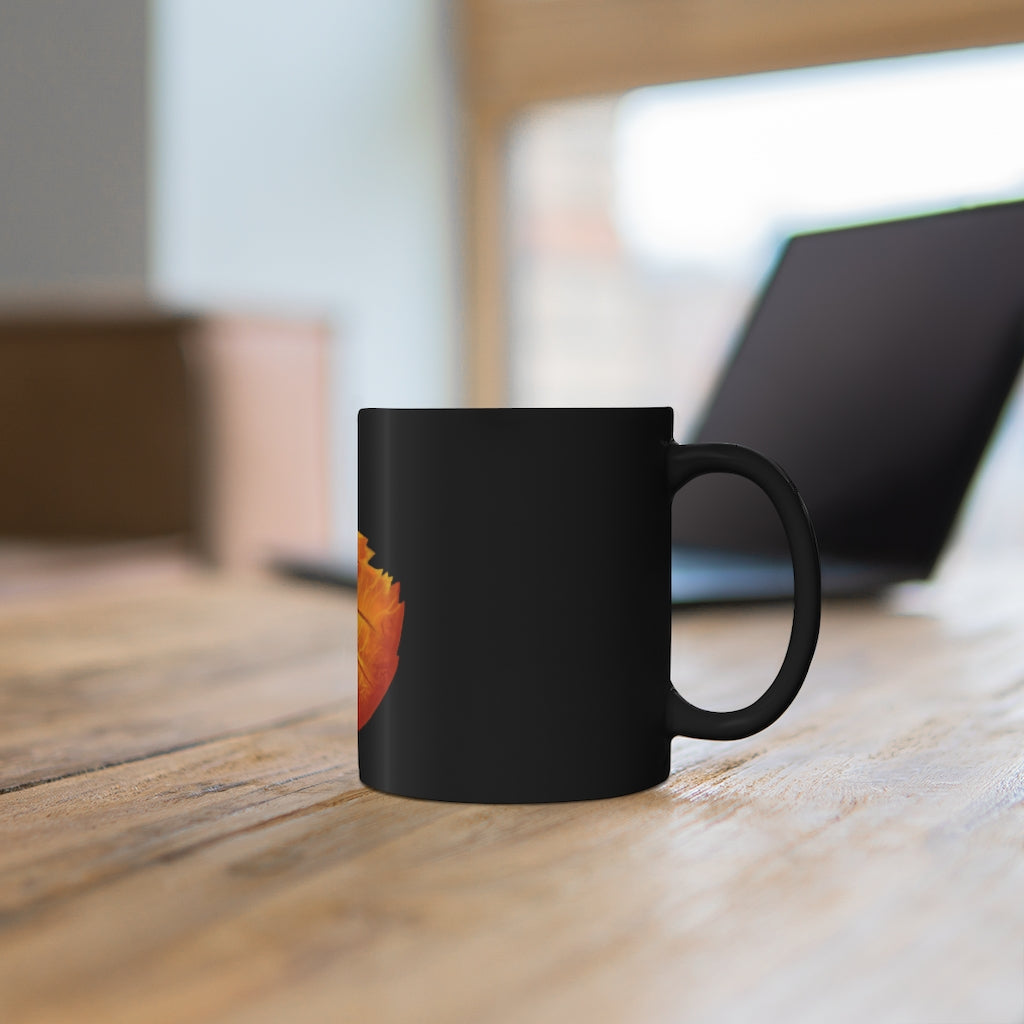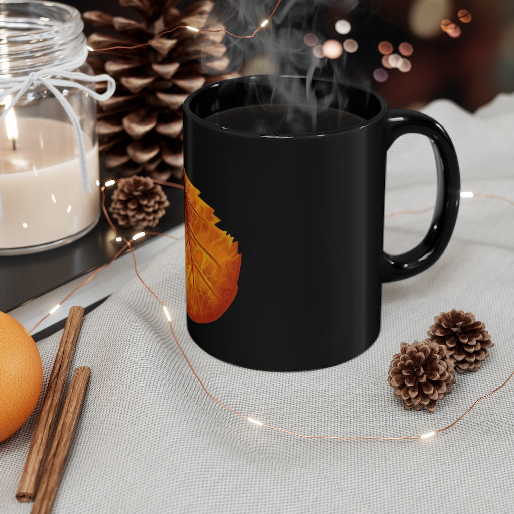 Crafted from high-quality black ceramic, the Orange Leaf mug is built to last. Its sturdy design ensures that it can withstand daily use, whether you're enjoying a hot beverage at home or taking it to the office. The 11-ounce capacity is ideal for those who appreciate a generous serving of their favorite drinks without being too bulky.