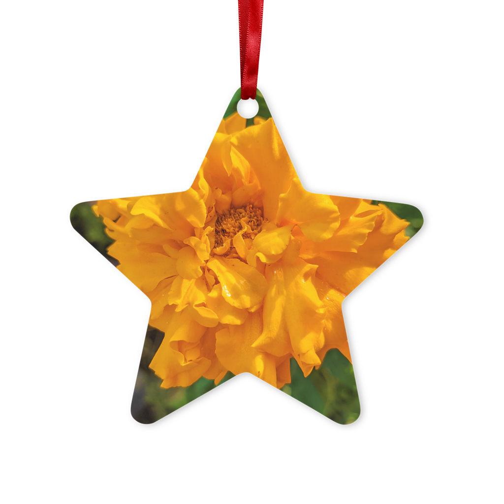 The OrangeFlower Metal Hanging Ornament is available in two charming shapes: a hexagon measuring 7.6cm with an approximate thickness of 1mm, and a star shape measuring 9.7cm x 10cm, also with an approximate thickness of 1mm. These shapes add a whimsical touch to your holiday decorations and can be used in various settings, from traditional to modern.