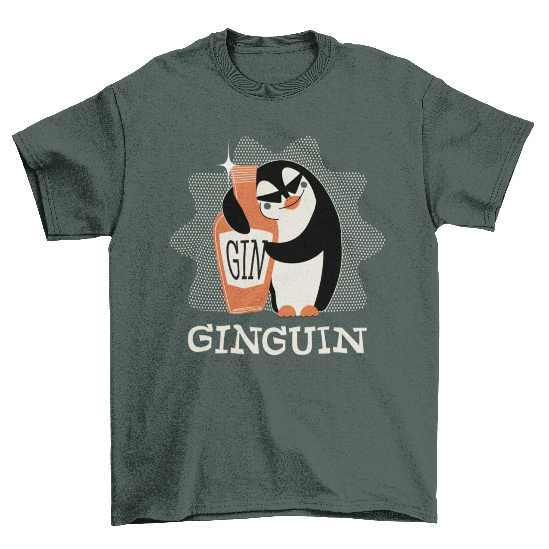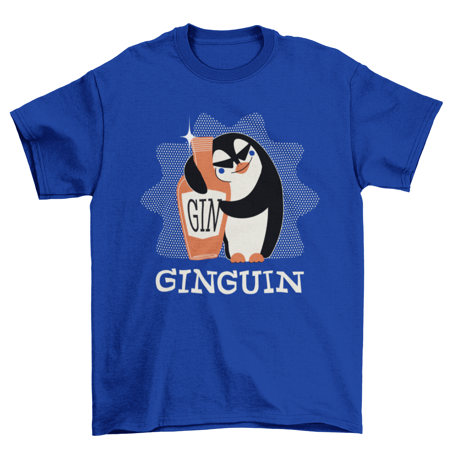 Introducing the Penguin Gin T-shirt, a delightful addition to any gin enthusiast's wardrobe. This unique T-shirt features a charming cartoon penguin hugging a gin bottle, accompanied by the playful word 'GINGUIN'. It's not just a shirt; it's a statement piece that showcases your love for gin in a fun and quirky way.