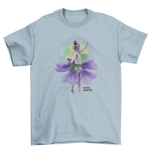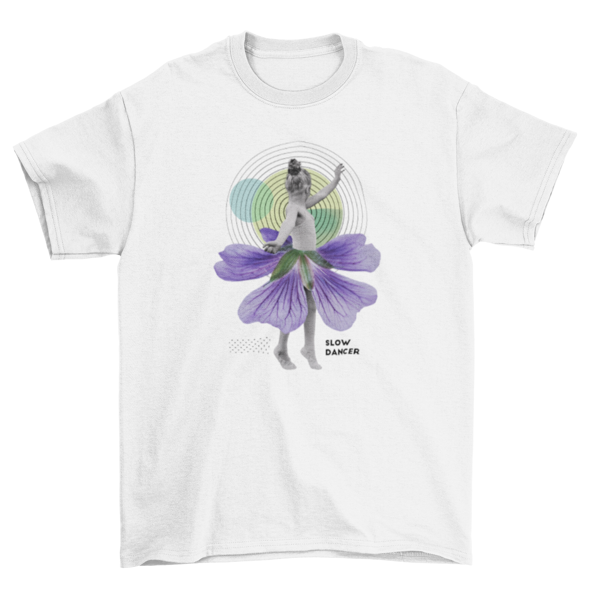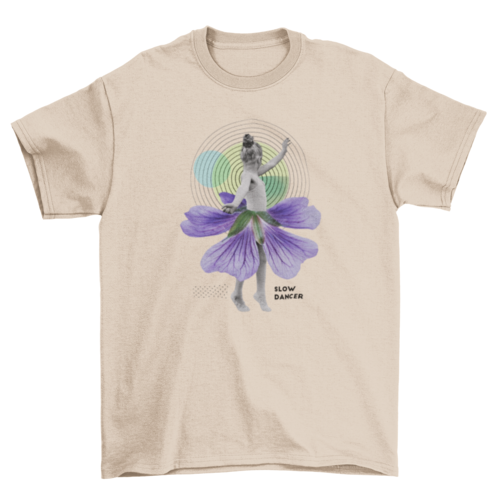 The inspiration behind this t-shirt comes from the beauty of childhood and the freedom of expression through dance. The collage art style adds a whimsical touch, allowing the wearer to embrace their individuality. Each element in the design, from the dancing girl to the colorful shapes and flowers, tells a story of joy and creativity.