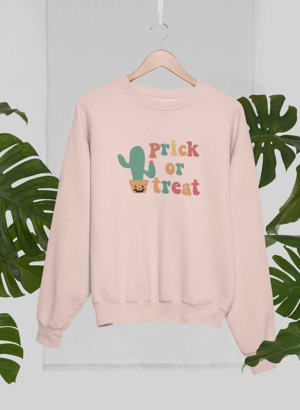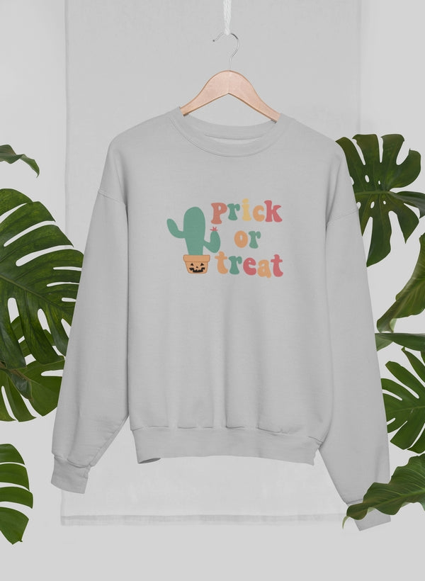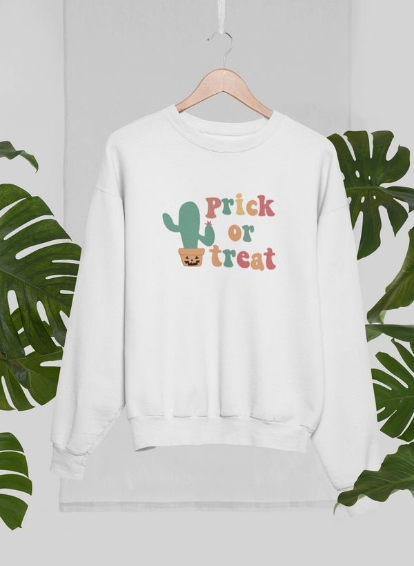 Introducing the Prick Or Treat Sweat Shirt, a unique and stylish addition to your wardrobe that combines comfort with a trendy design. This sweatshirt is crafted from 100% soft cotton, ensuring a cozy fit that feels great against your skin. Whether you're lounging at home or heading out for a casual outing, this sweatshirt is the perfect choice for expressing your personal style.