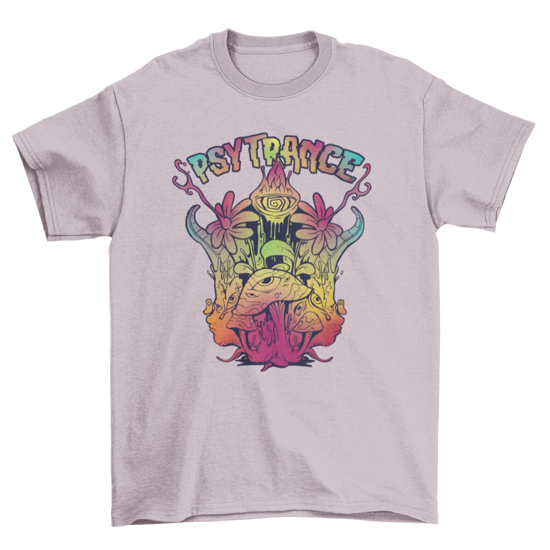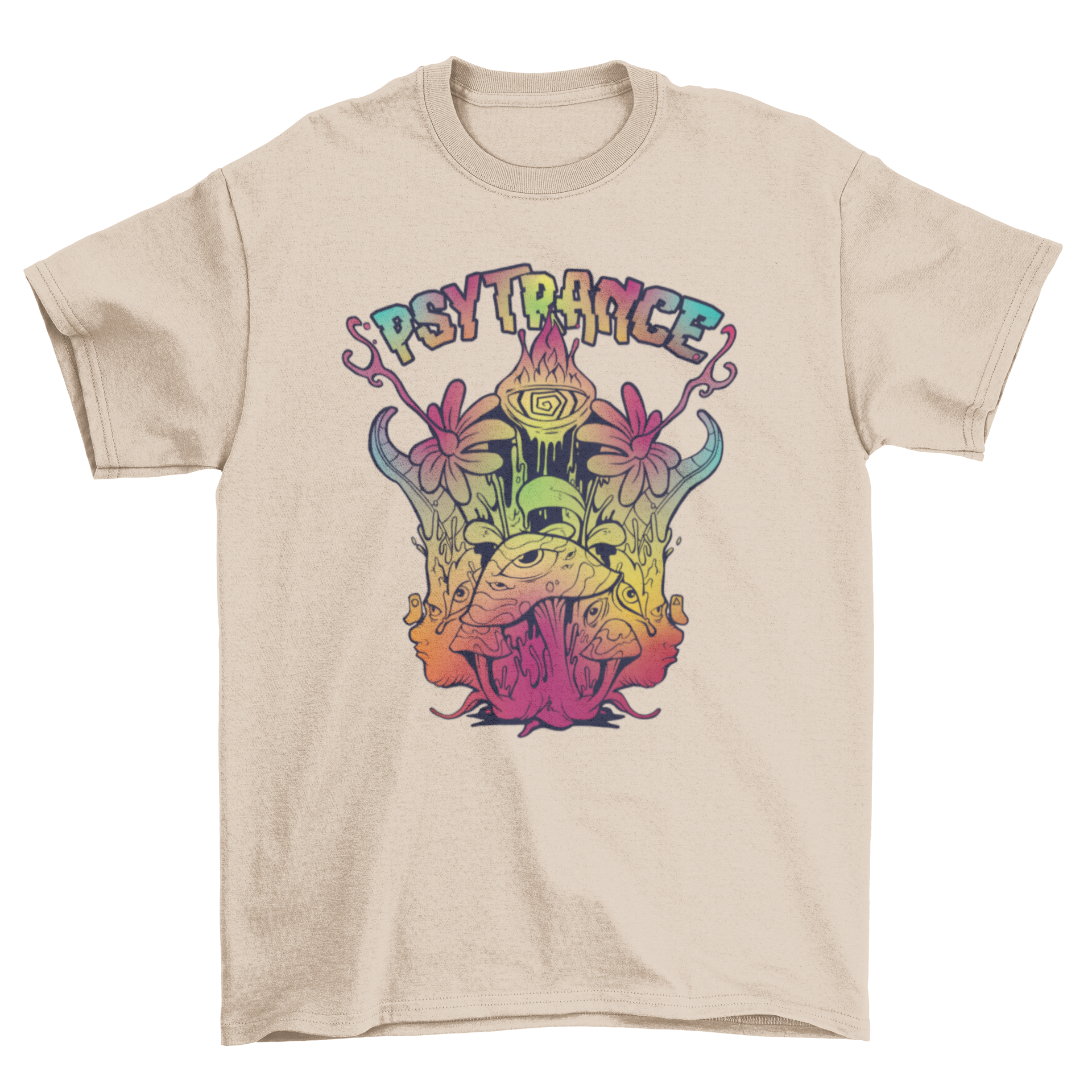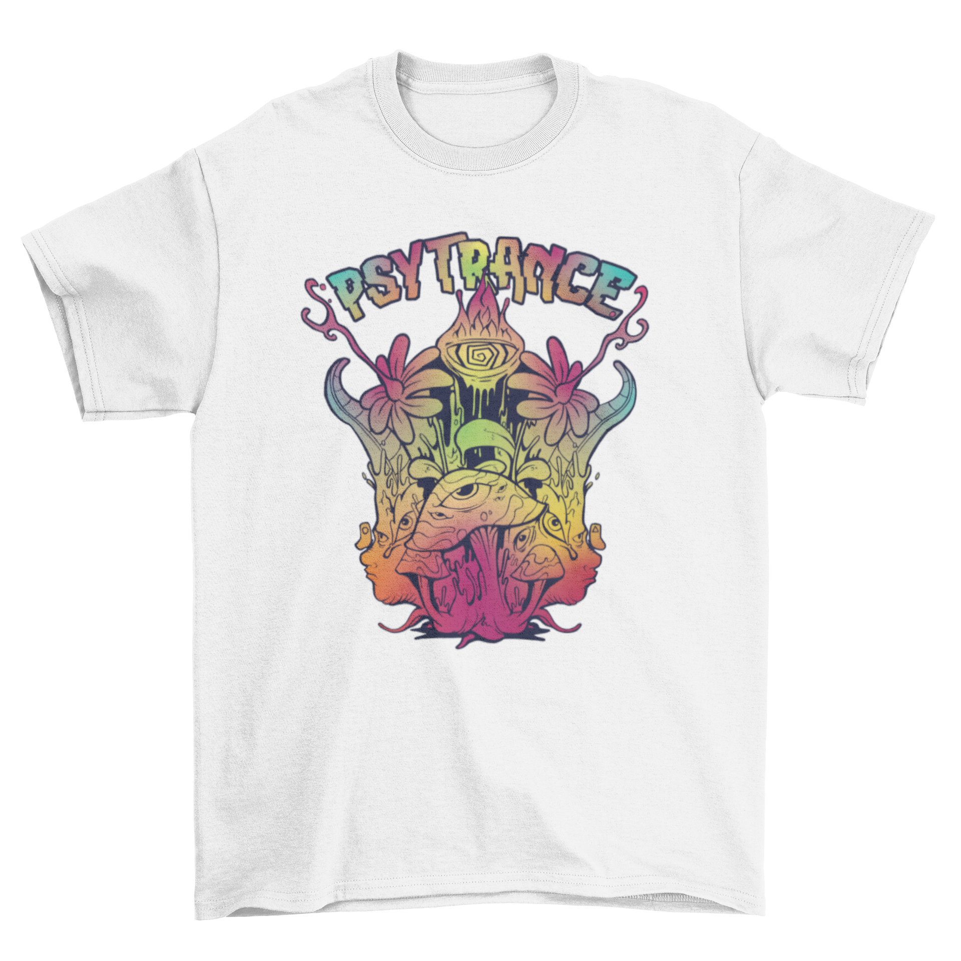 Introducing the Psytrance Trippy Psychedelic T-shirt, a must-have for any fan of the vibrant and colorful world of Psytrance music and culture. This unique t-shirt features a stunning psychedelic illustration that showcases intricate designs of mushrooms, symbolizing the deep connection between nature and the psychedelic experience. The word 'PSYTRANCE' boldly displayed above the artwork captures the essence of this energetic and immersive music genre.