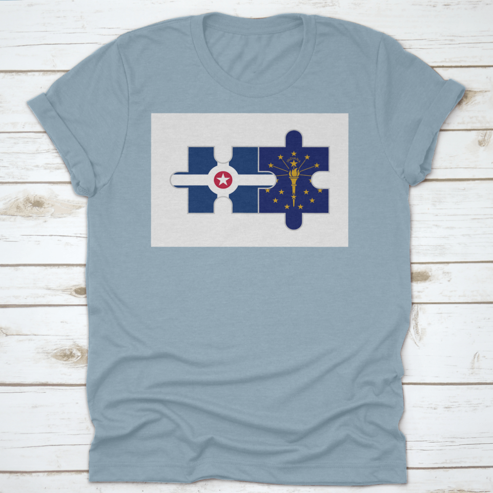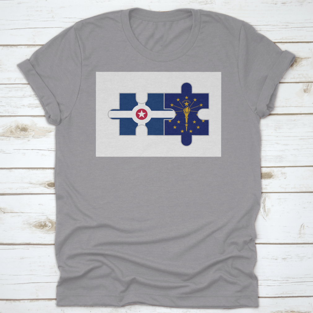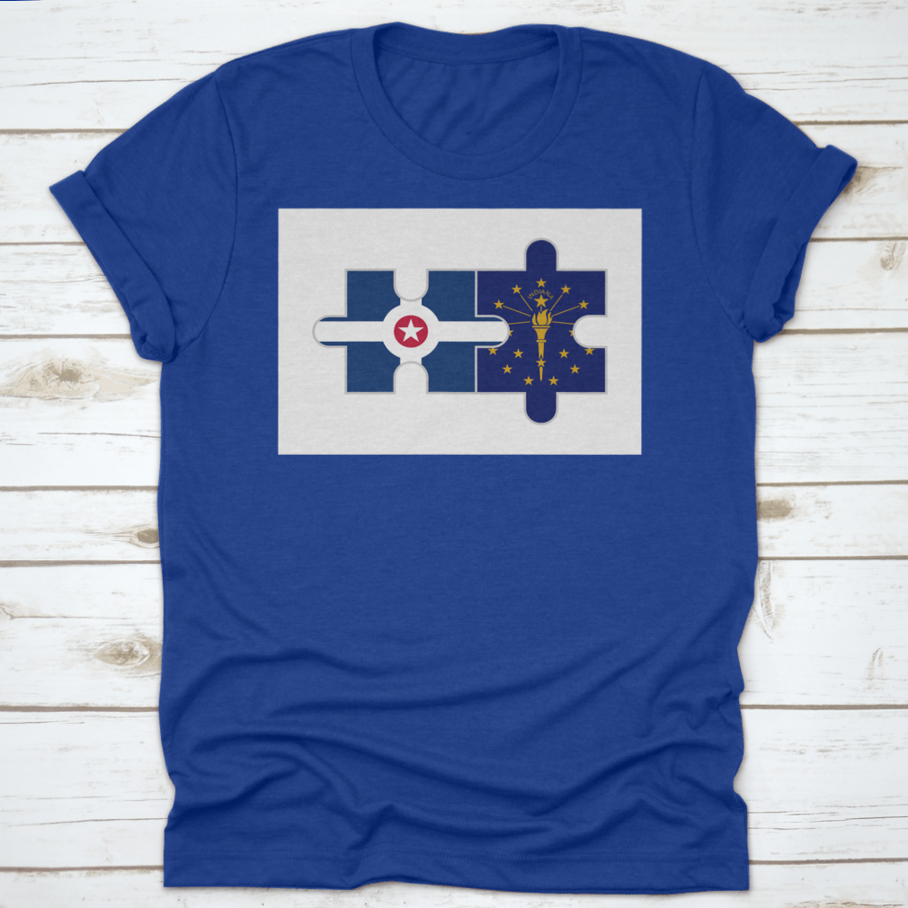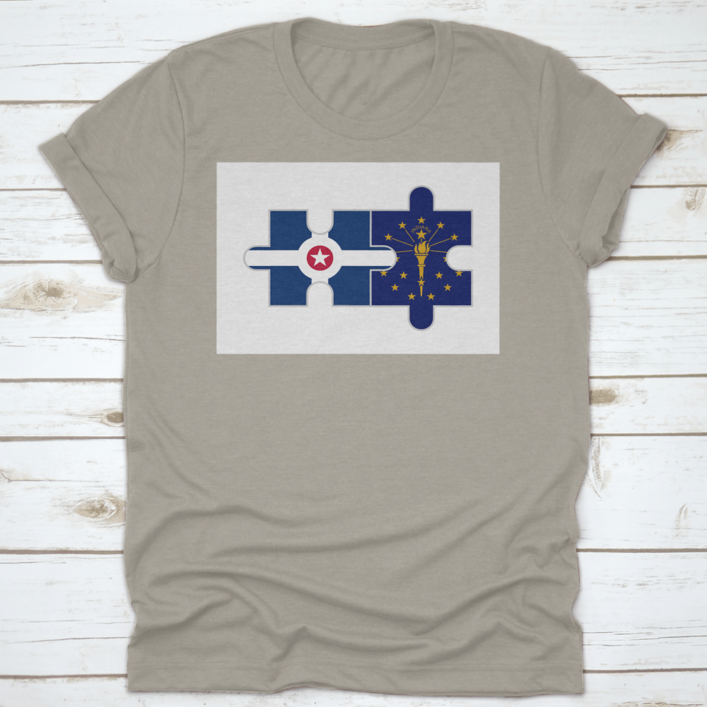 Discover the unique Puzzle Pieces of Indianapolis City and Indiana State Flags Vector, a stunning representation of Indiana's rich heritage and vibrant culture. This design is perfect for those who want to showcase their love for the state and its capital, Indianapolis. Made from high-quality materials, this product is not only visually appealing but also comfortable to wear.