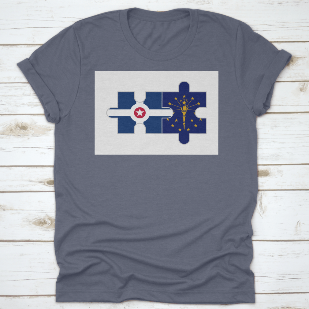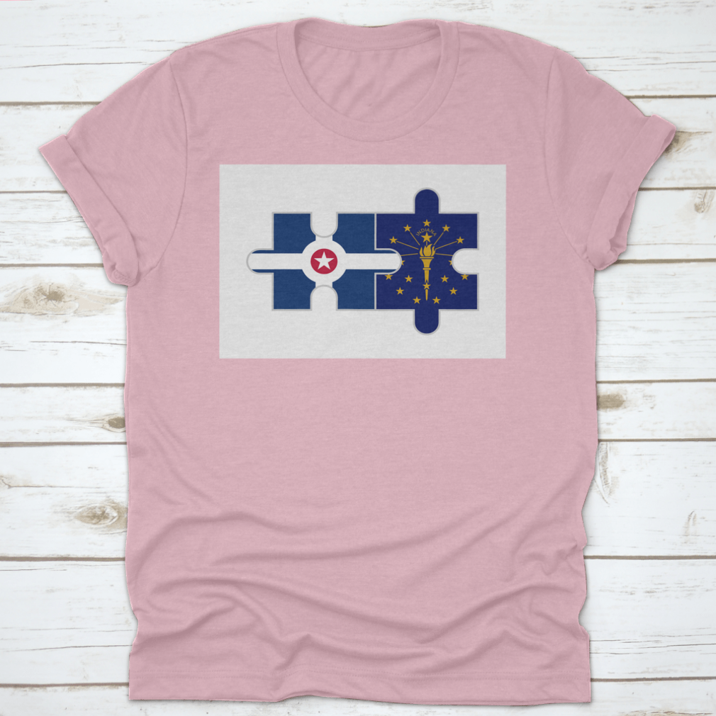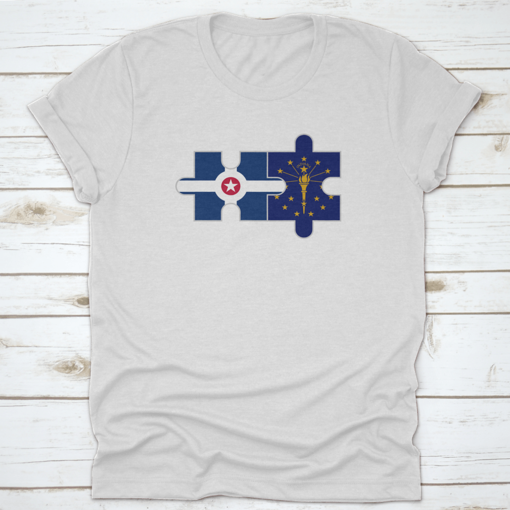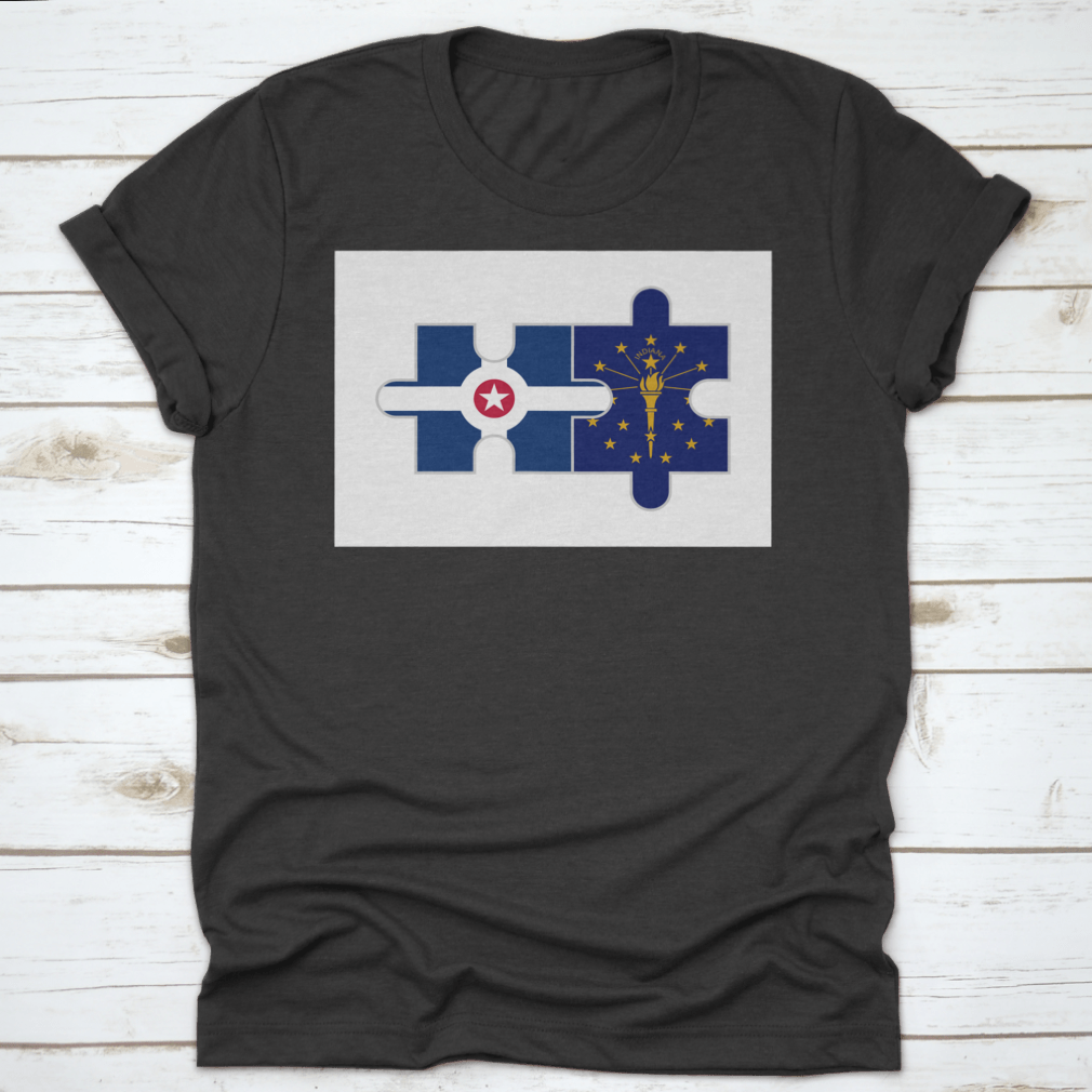 Discover the unique Puzzle Pieces of Indianapolis City and Indiana State Flags Vector, a stunning representation of Indiana's rich heritage and vibrant culture. This design is perfect for those who want to showcase their love for the state and its capital, Indianapolis. Made from high-quality materials, this product is not only visually appealing but also comfortable to wear.