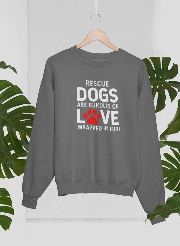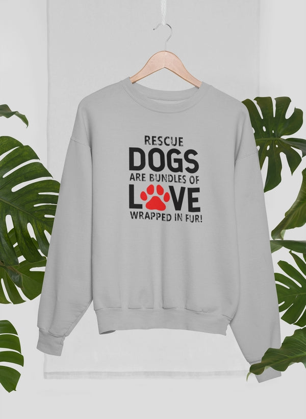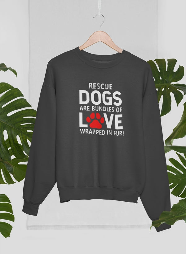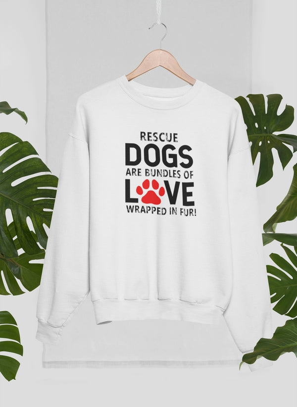 The Rescue Dogs Are Bundles of Love Sweat Shirt is designed for a comfortable fit that allows for easy movement. It features a classic crew neck and long sleeves, making it perfect for layering during colder months. The breathable fabric ensures that you stay comfortable, whether you are out and about or relaxing at home.