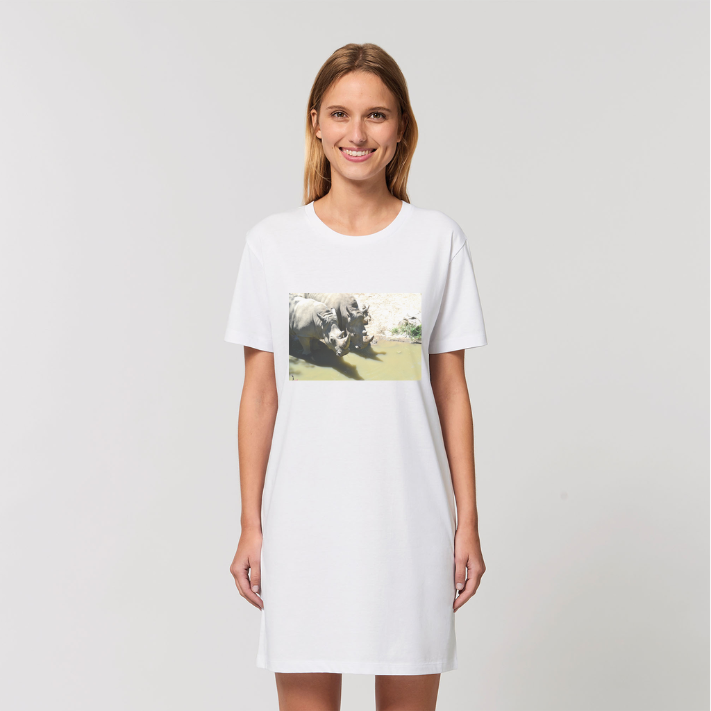 Your Rhinos Organic T-Shirt Dress will be printed with love and securely packed for shipping. We aim to deliver your order within 3 to 5 business days, allowing you to enjoy your new favorite dress without long waiting times. Please note that the prints may appear larger than shown in mockups, and colors may vary slightly from what is displayed due to screen differences.