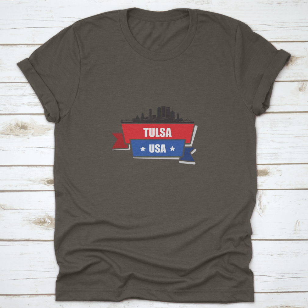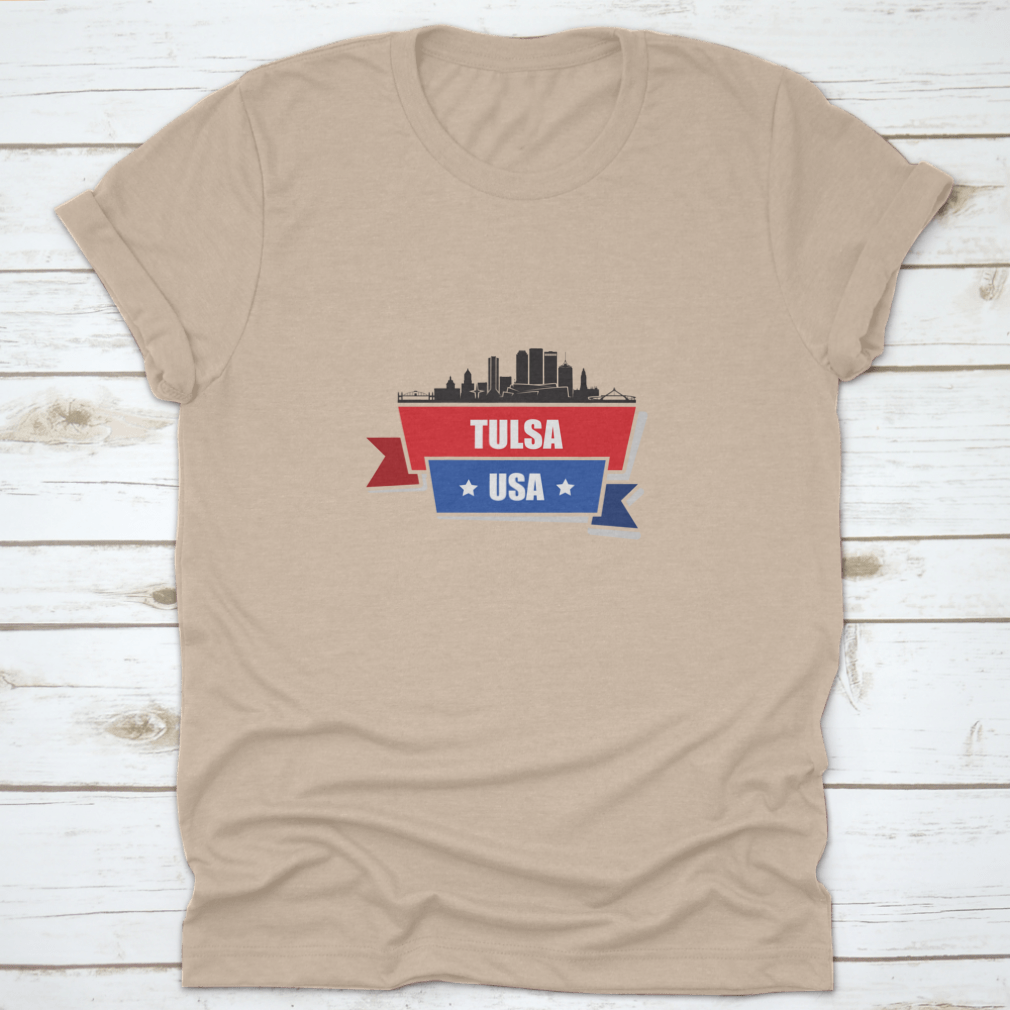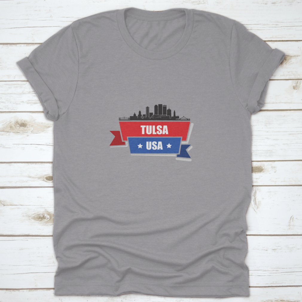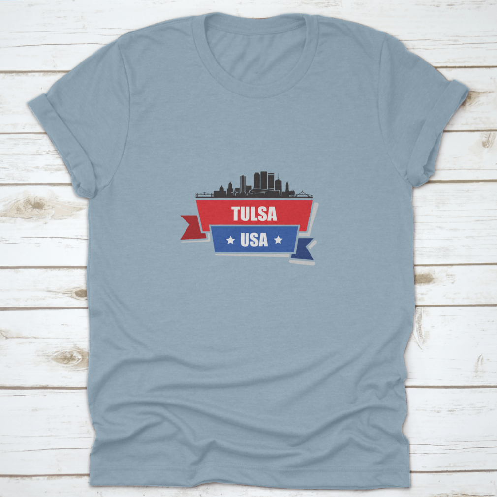 Introducing the Ribbon Style Typography of Tulsa, Oklahoma, USA Travel Icon Skyline t-shirt, a perfect blend of style and comfort for those who love to showcase their passion for travel and cityscapes. Made from high-quality materials, this t-shirt is designed to provide a comfortable fit while making a bold statement.