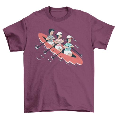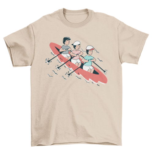 Introducing our unique Rowing T-shirt, a must-have for anyone who loves the great outdoors and the sport of rowing. This T-shirt features a delightful illustration of three boys rowing a canoe, capturing the spirit of adventure and camaraderie that comes with this beloved activity. Made from high-quality materials, this shirt is designed for comfort and durability, making it perfect for both casual wear and active outings.