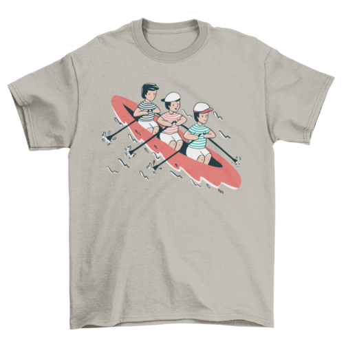 The standout feature of this T-shirt is its charming design. The illustration of three boys rowing a canoe is not only cute but also evokes a sense of nostalgia and adventure. It’s a great conversation starter and a way to express your love for rowing and outdoor activities. This design is perfect for children and adults alike, making it a versatile addition to any wardrobe.