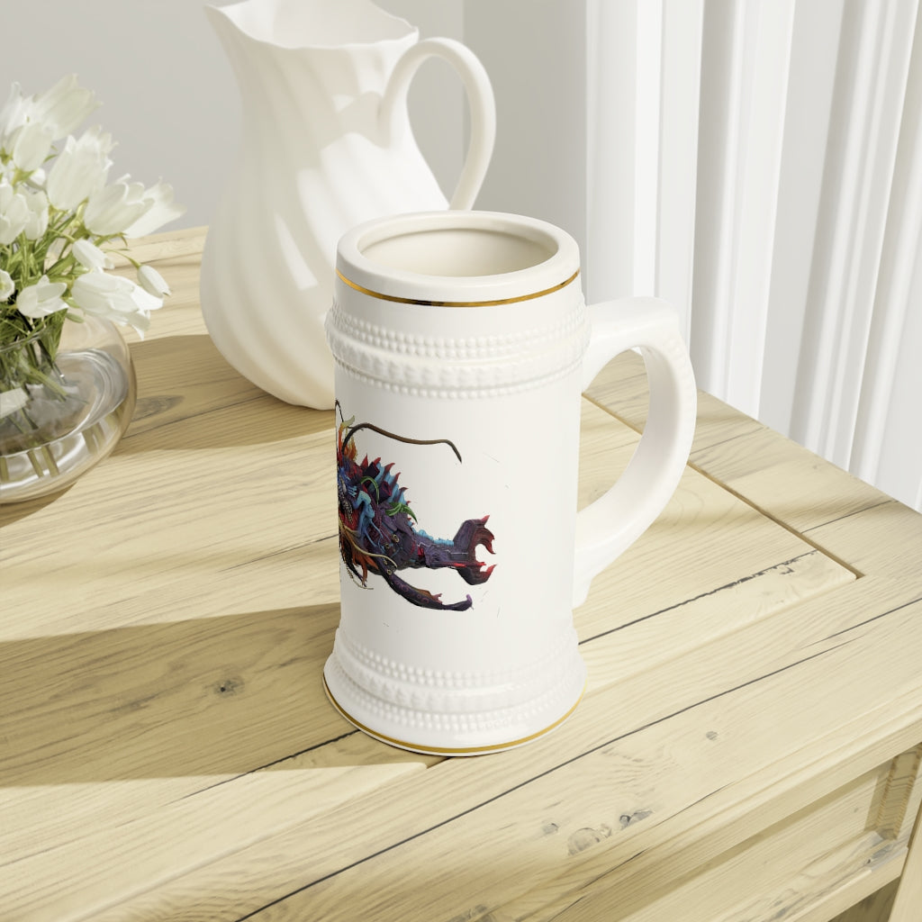 Introducing the Ryuuk the Fish Dragon God Stein Mug, a stunning blend of functionality and artistry. This unique stein mug is crafted from high-quality, durable white ceramic, ensuring that it not only looks great but also stands the test of time. Whether you're enjoying a cold beverage or displaying it as a decorative piece, this mug is designed to impress.