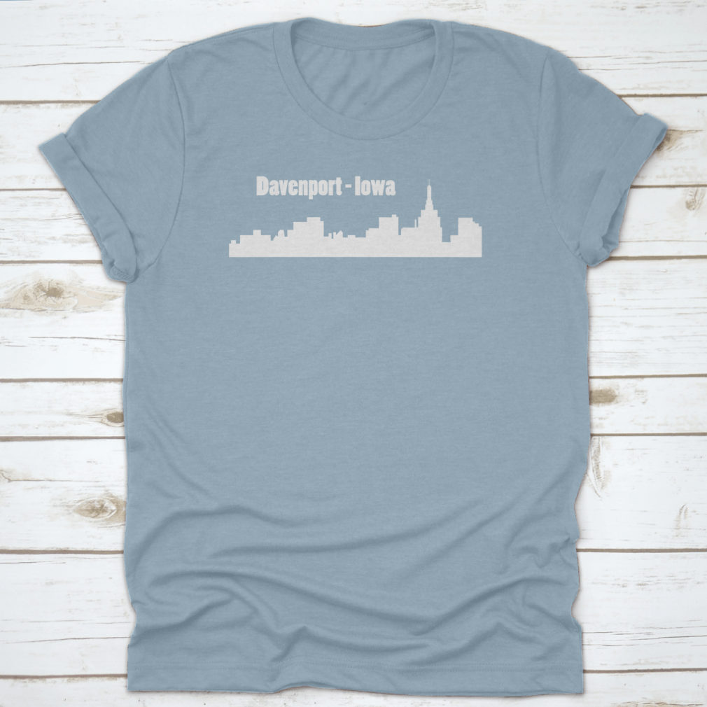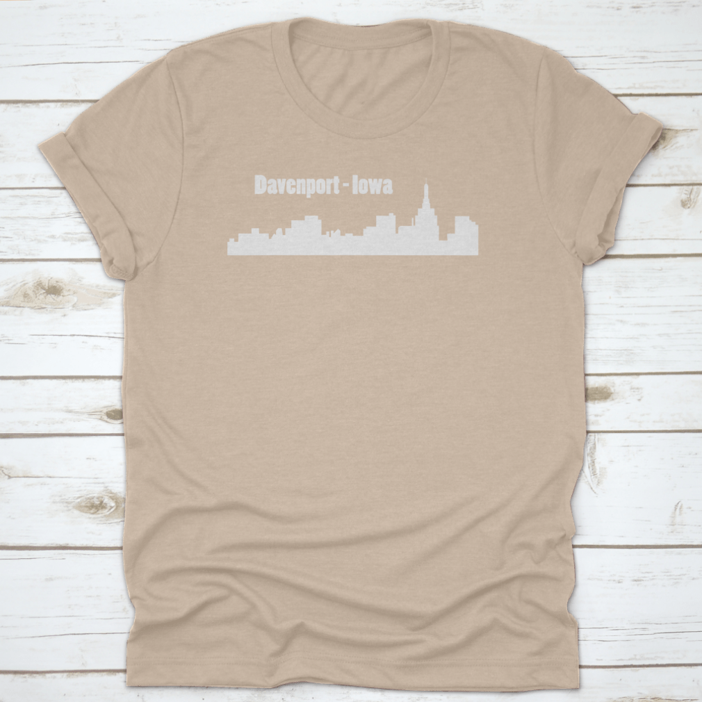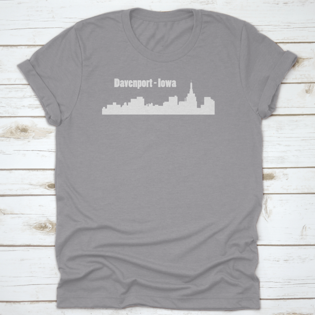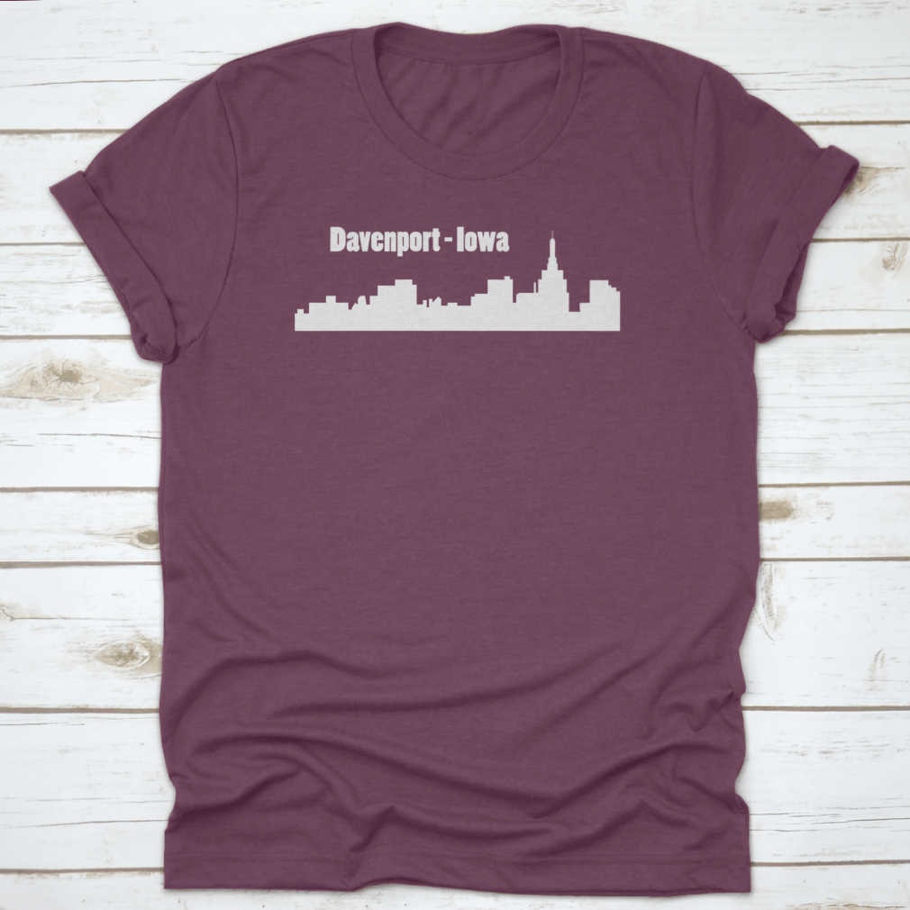 Wearing this t-shirt is a great way to express your love for Davenport, Iowa. The silhouette illustration of the city skyline serves as a conversation starter and a way to connect with others who share your appreciation for this beautiful city. It's perfect for tourists wanting a memorable souvenir or locals wanting to showcase their hometown pride.