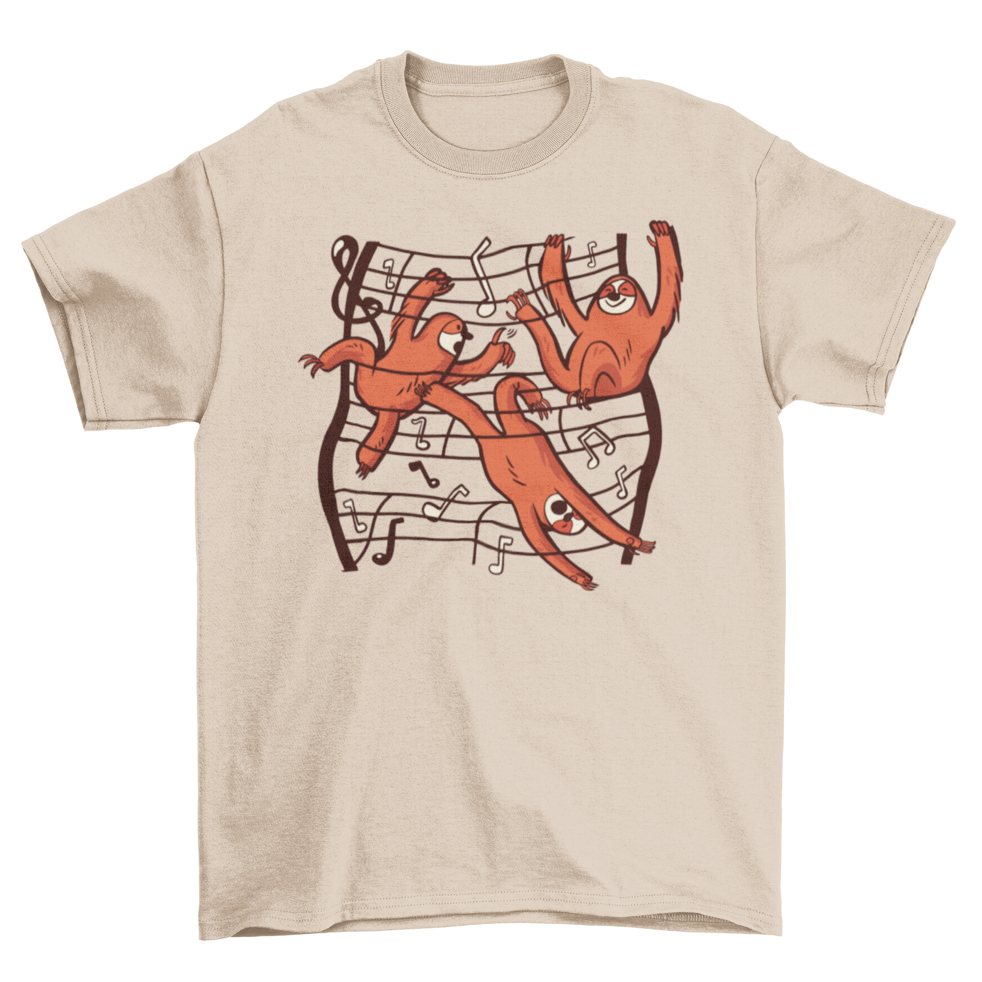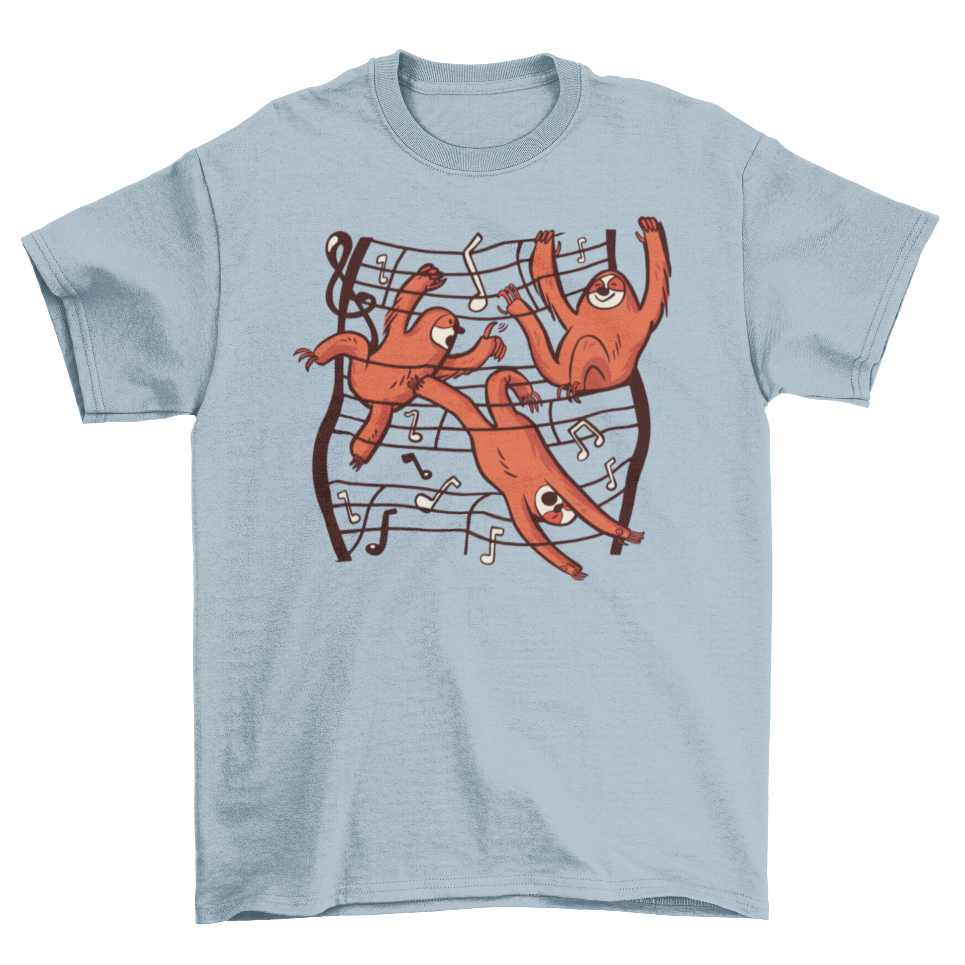 The design of this t-shirt is not only charming but also eye-catching. The sloths are depicted in a playful manner, engaging with the musical notes that float around them. This creates a lively and joyful vibe, making it a great conversation starter. Whether you’re at a casual gathering, a music festival, or just lounging at home, this t-shirt will surely bring smiles and compliments.