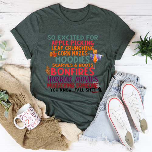 In summary, the So Excited For Apple Picking Leaf Crunching Corn Mazes Tee is a must-have for anyone looking to embrace the autumn spirit. With its soft fabric, durable construction, and ethical production, this tee is perfect for all your fall activities. Don't miss out on adding this versatile and stylish t-shirt to your collection!