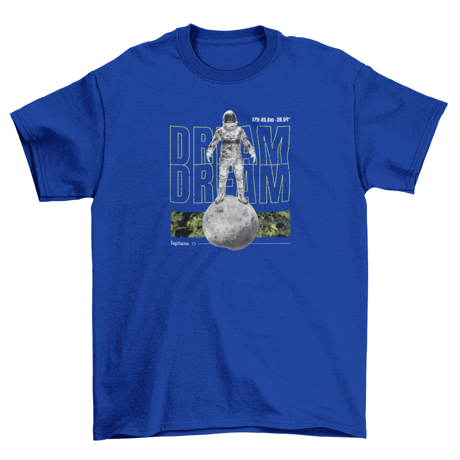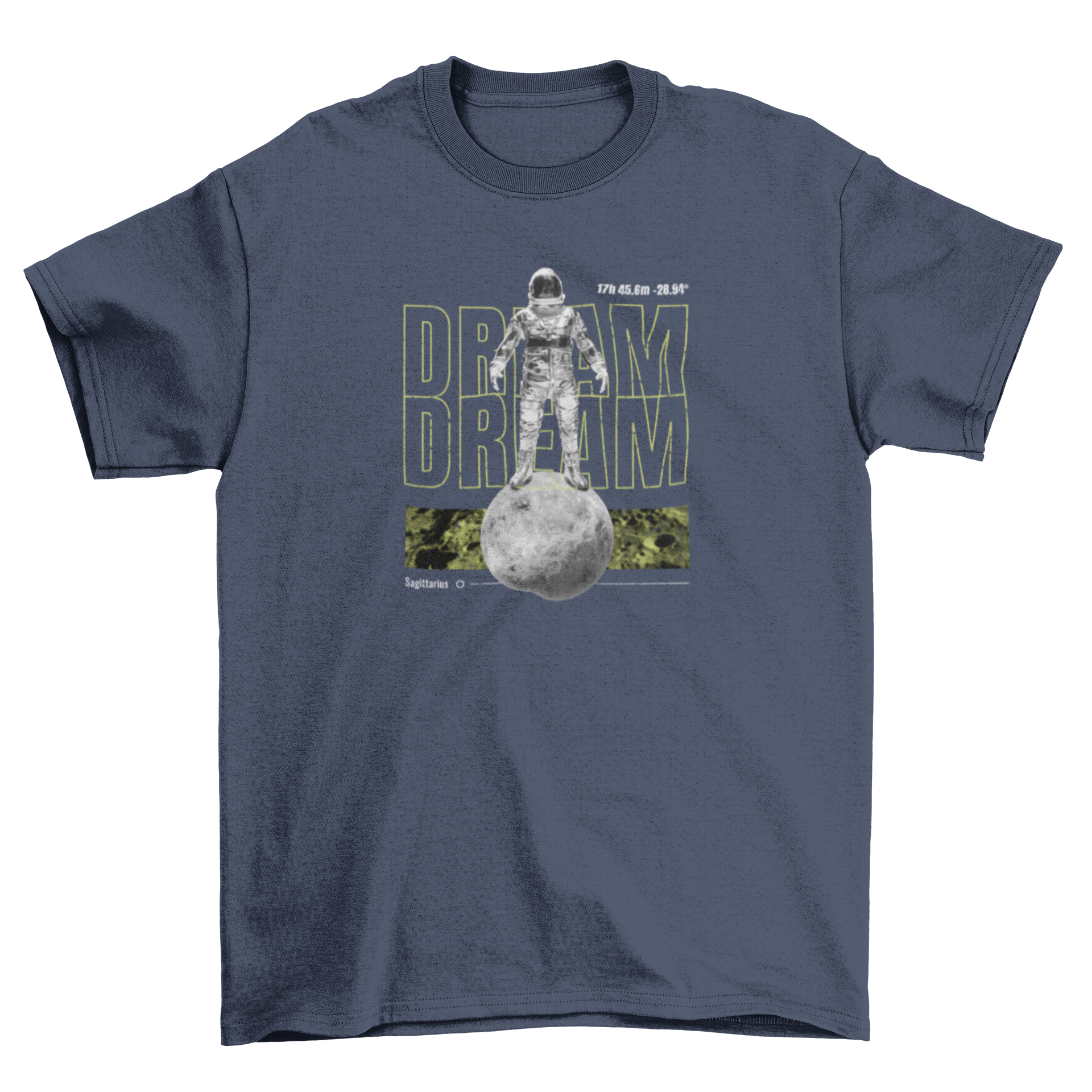 The design of this t-shirt captures the awe-inspiring moment of humanity's first steps on the lunar surface. The astronaut, depicted in a classic space suit, symbolizes exploration and the endless possibilities that lie beyond our planet. The quote 'Dream' serves as a reminder to pursue your aspirations, no matter how far-fetched they may seem. This t-shirt is not just clothing; it's a conversation starter and a source of motivation.