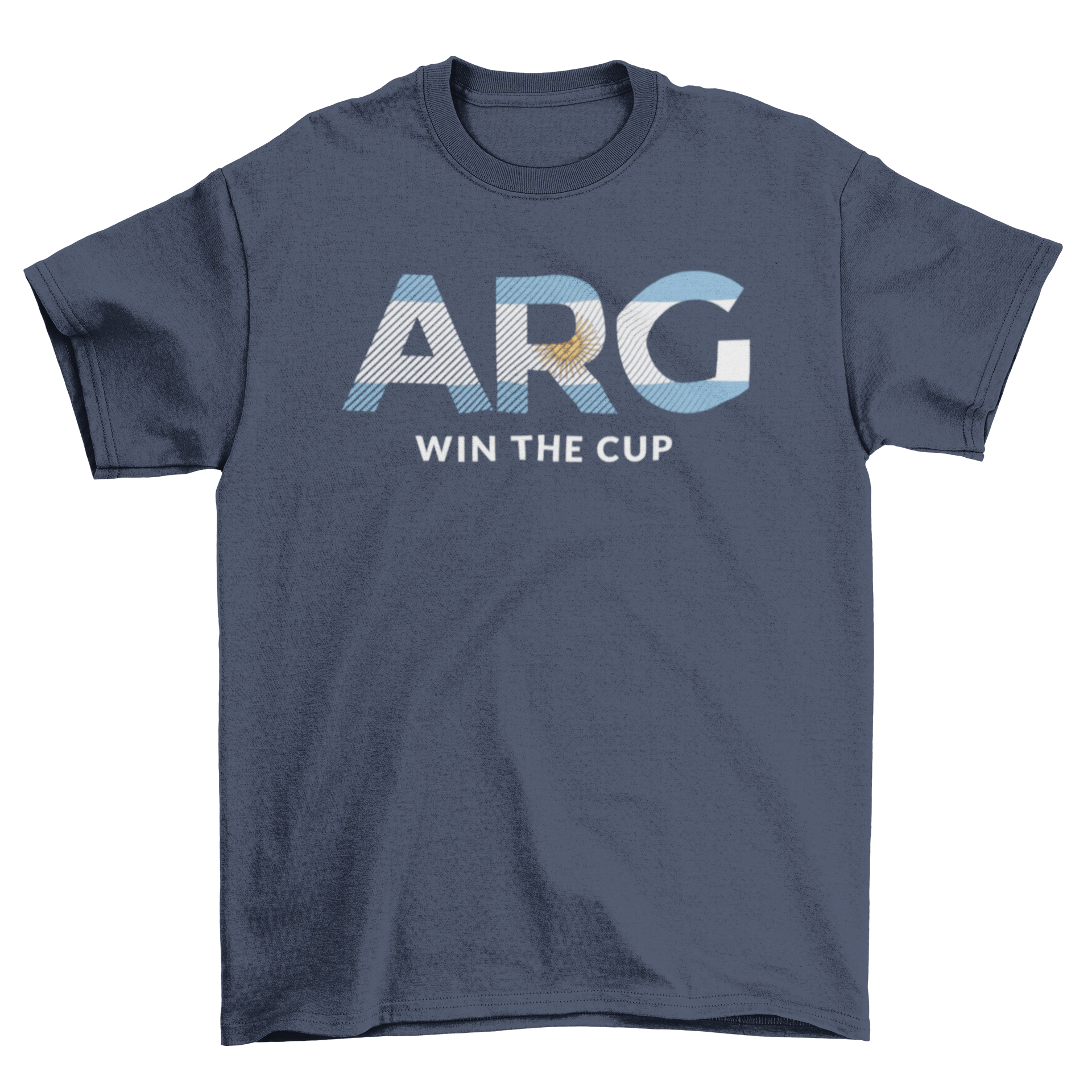 The design of this t-shirt is both stylish and eye-catching. The bold text proclaiming "ARG WIN THE CUP" is prominently displayed, making it clear who you are rooting for. The vibrant colors reflect the spirit of the Argentine flag, allowing you to showcase your national pride in a fashionable way. This t-shirt is perfect for casual outings, game days, or even as a conversation starter among fellow football enthusiasts.