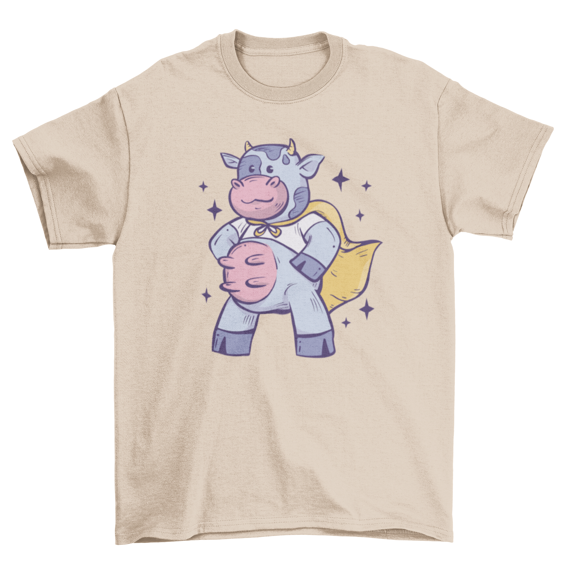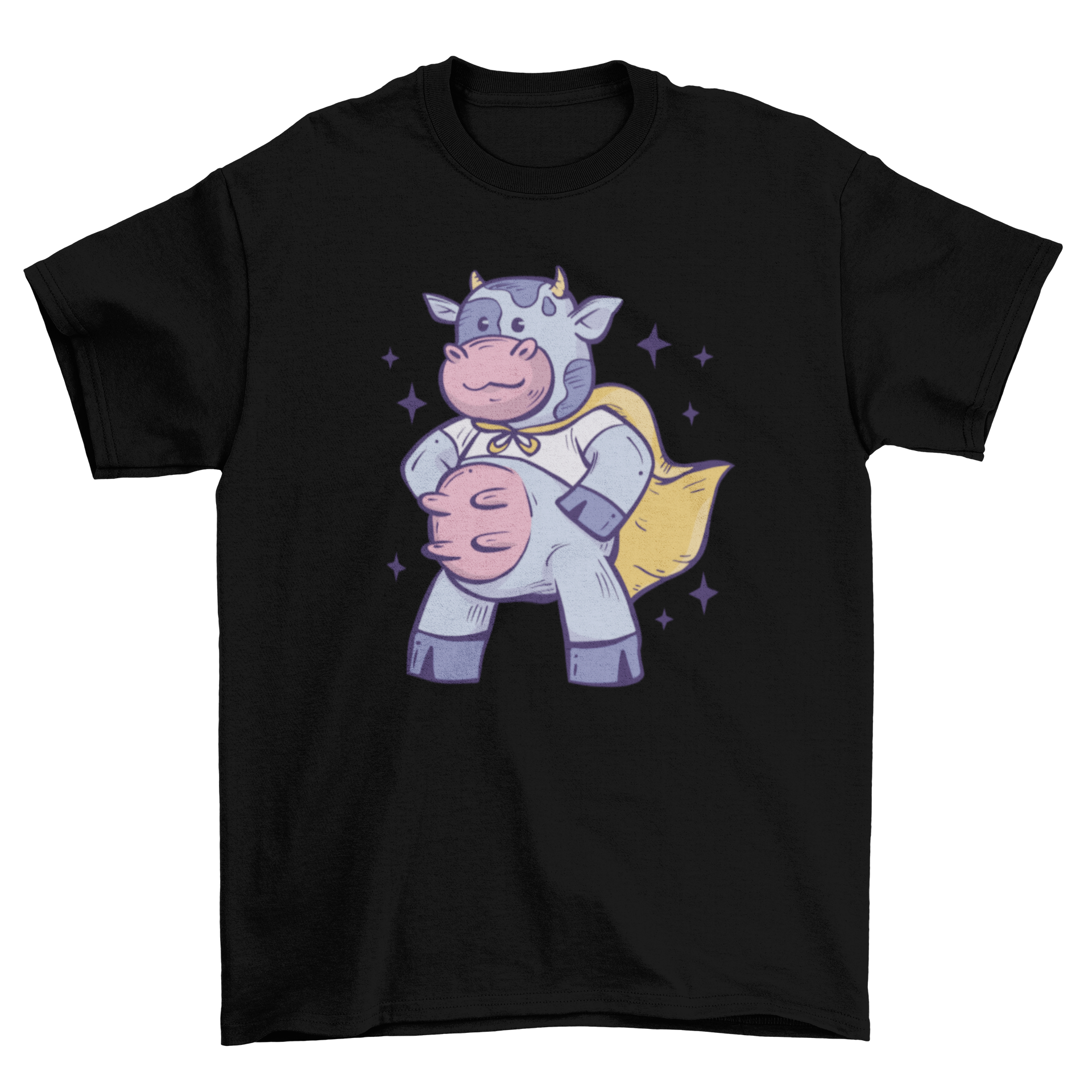 Introducing the Superhero Cow T-Shirt, a fun and eye-catching addition to your wardrobe. This unique t-shirt features a whimsical design of a cow dressed as a superhero, making it a perfect choice for those who love animals and enjoy playful fashion. Whether you're looking to express your personality or simply want to stand out in a crowd, this t-shirt is sure to do the trick.