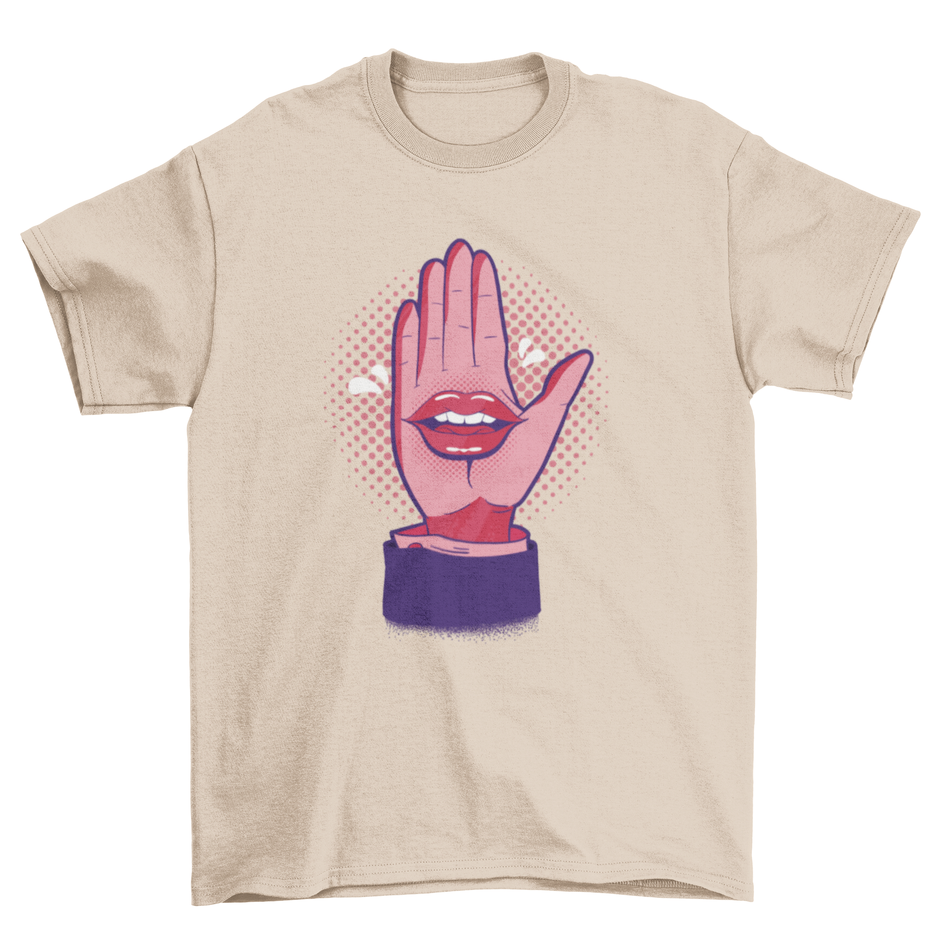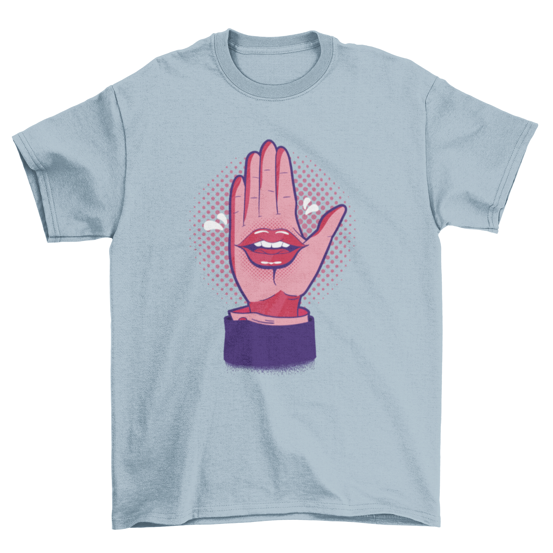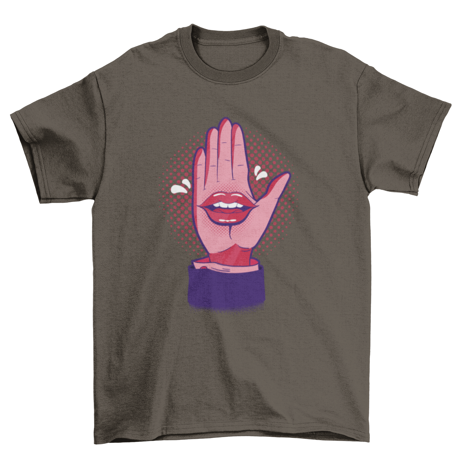 Introducing the Talk Hand T-Shirt Design, a must-have for anyone looking to express their individuality through fashion. This t-shirt features a striking comic-style illustration of a hand with a mouth, creating a playful and eye-catching design that is sure to turn heads. Made from high-quality materials, this t-shirt not only looks great but also feels comfortable against your skin, making it perfect for everyday wear.