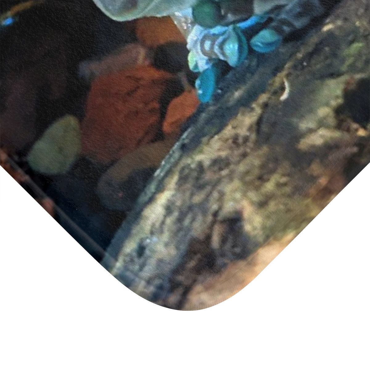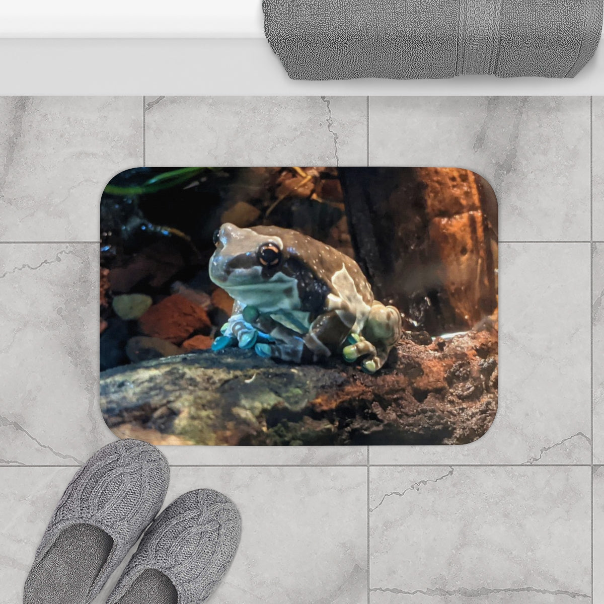 Stylish Toad Bath Mat with anti-slip backing in a bathroom setting, showcasing its microfiber texture and edge binding.