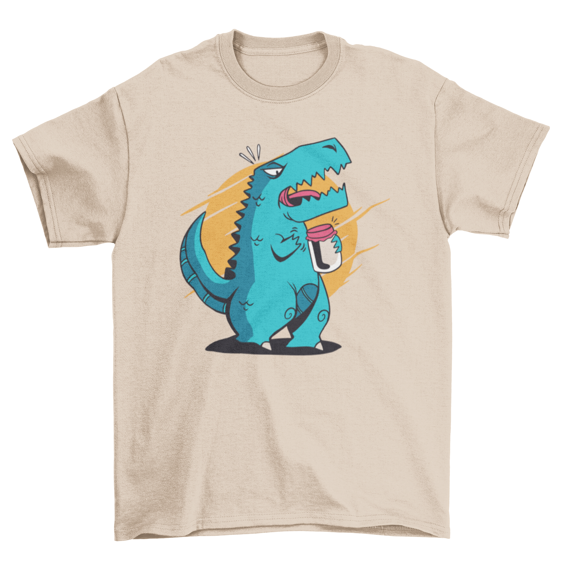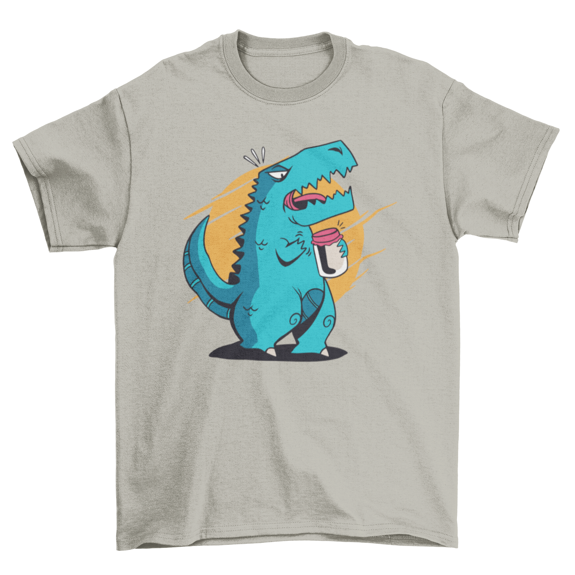 The standout feature of this t-shirt is undoubtedly its charming design. The T-rex cartoon trying to open a jar is not only humorous but also showcases a playful side of this iconic dinosaur. This design is perfect for those who appreciate a good laugh and want to express their personality through their clothing.