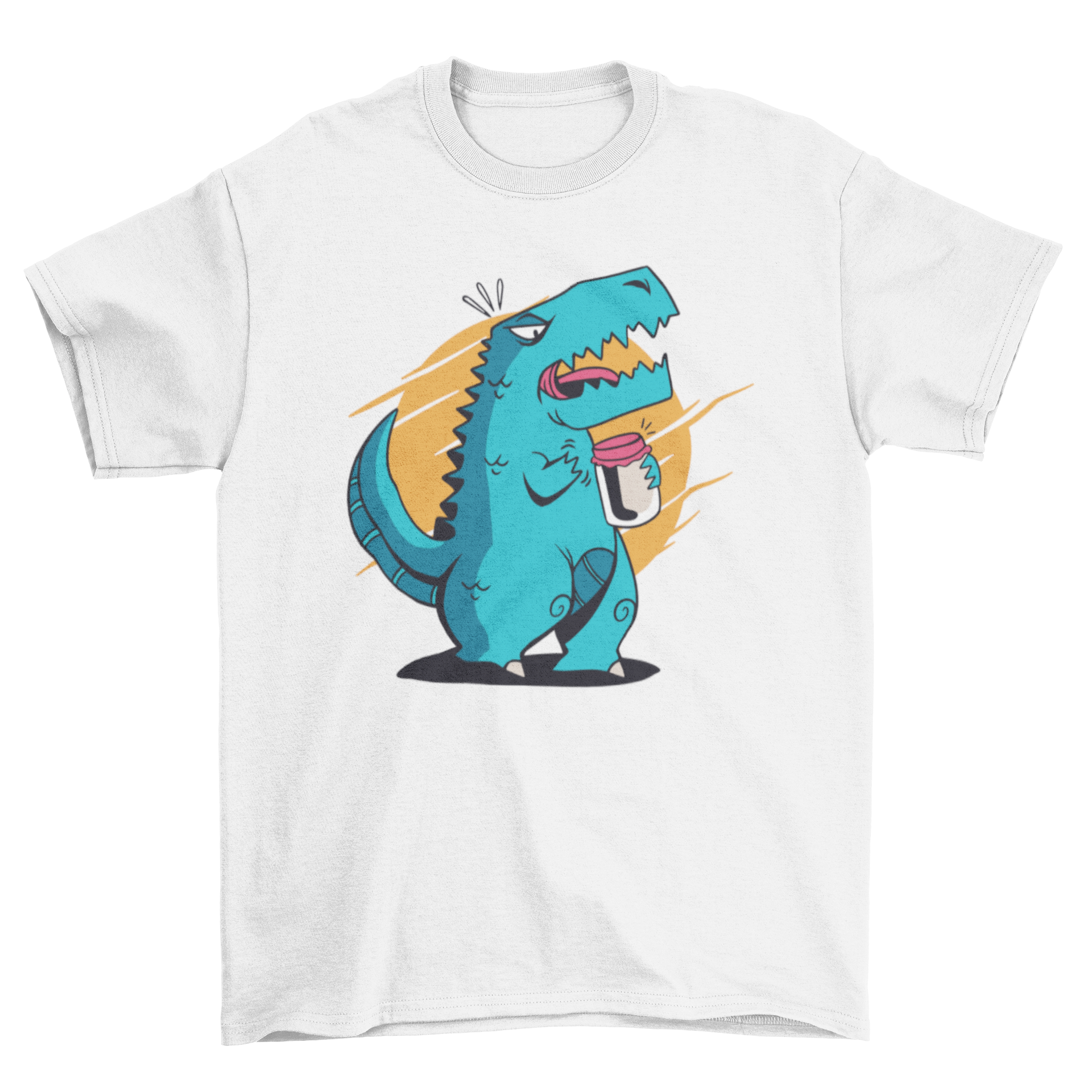Introducing the T-rex Opening Jar T-shirt, a delightful addition to any dinosaur lover's wardrobe. This unique t-shirt features a playful cartoon of a T-rex attempting to open a jar, making it a fun and eye-catching piece. Whether you're a fan of dinosaurs or simply enjoy quirky designs, this t-shirt is sure to bring a smile to your face.
